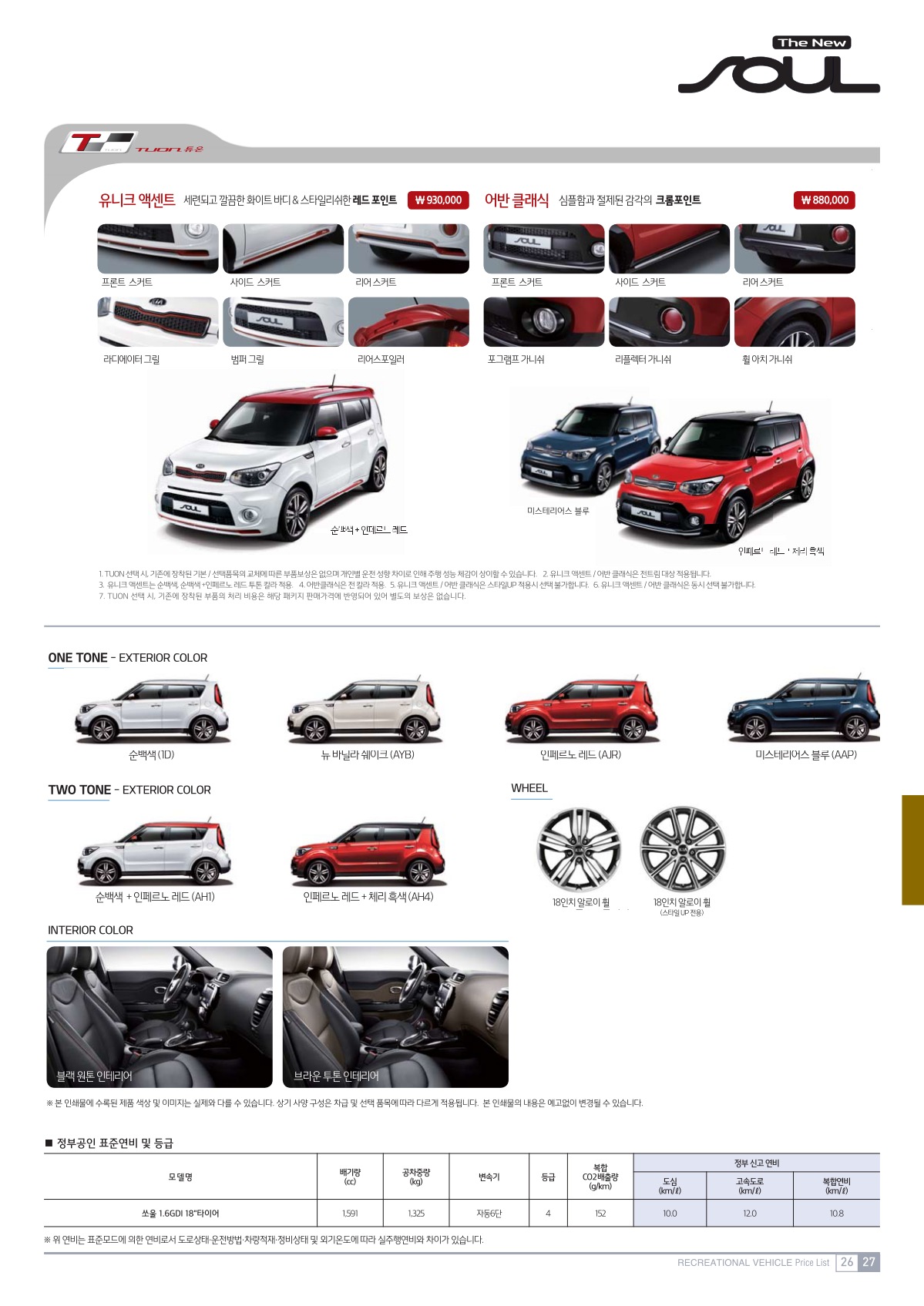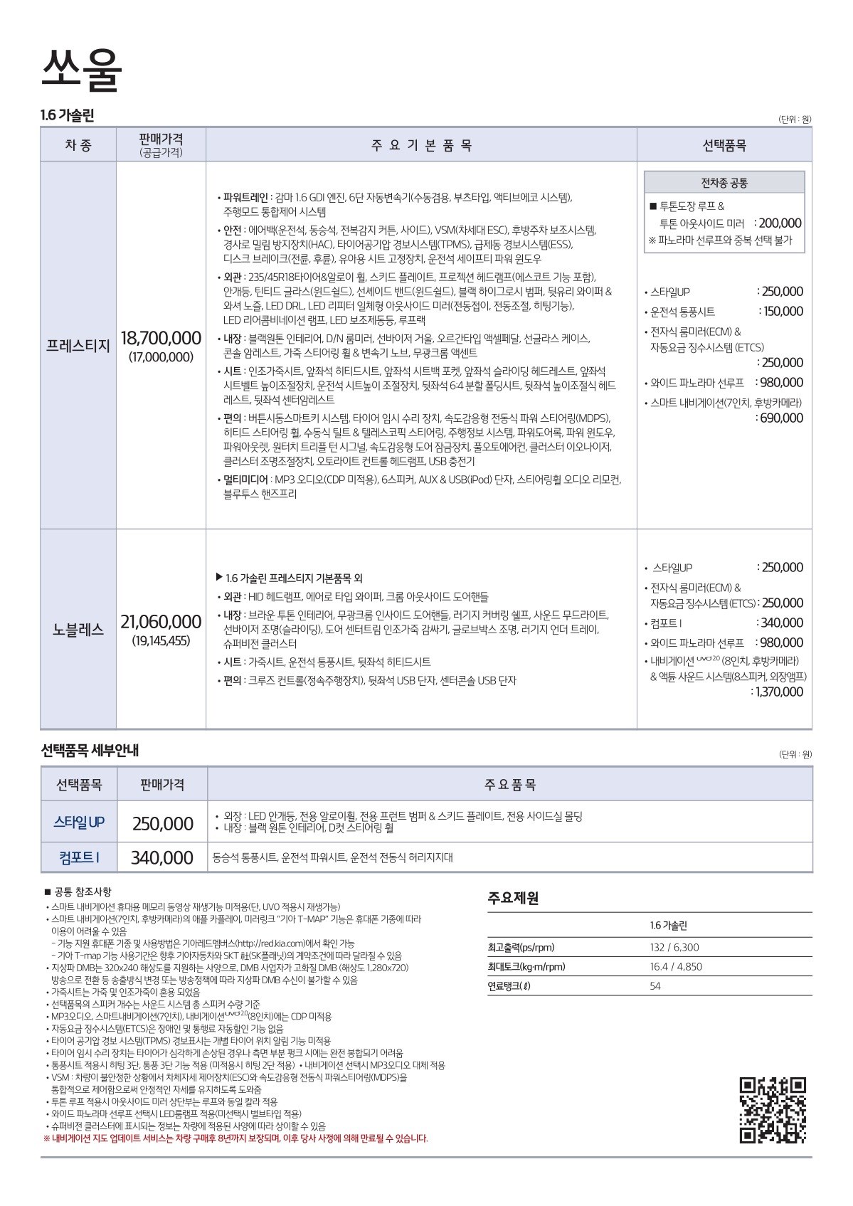 2016년 9월 올뉴쏘울(PS) 신차가격표