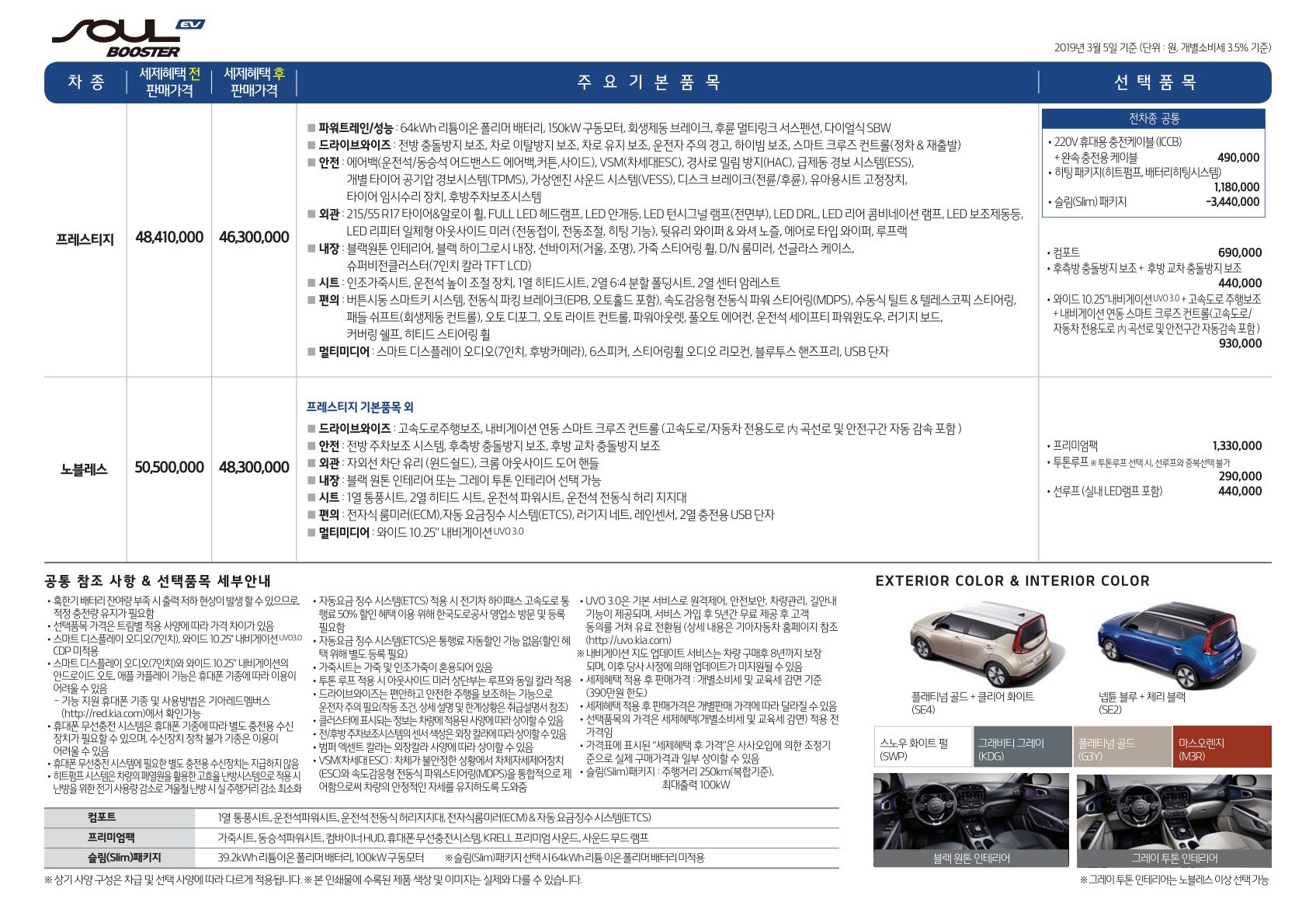 2019년 3월 쏘울 부스터 EV 신차가격표