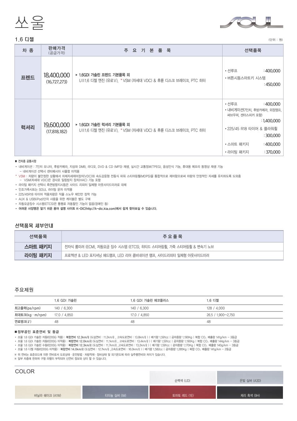 2013년 10월 올뉴쏘울(PS) 신차가격표