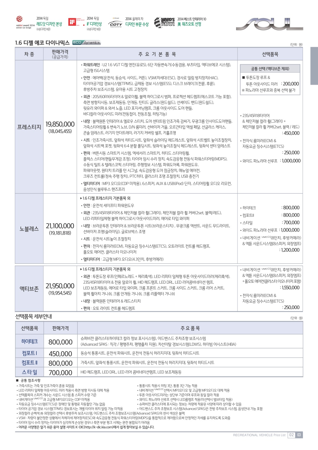 2014년 8월 올뉴쏘울(PS) 신차가격표