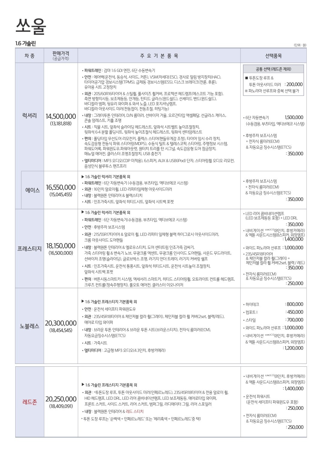 2015년 5월 올뉴쏘울(PS) 신차가격표