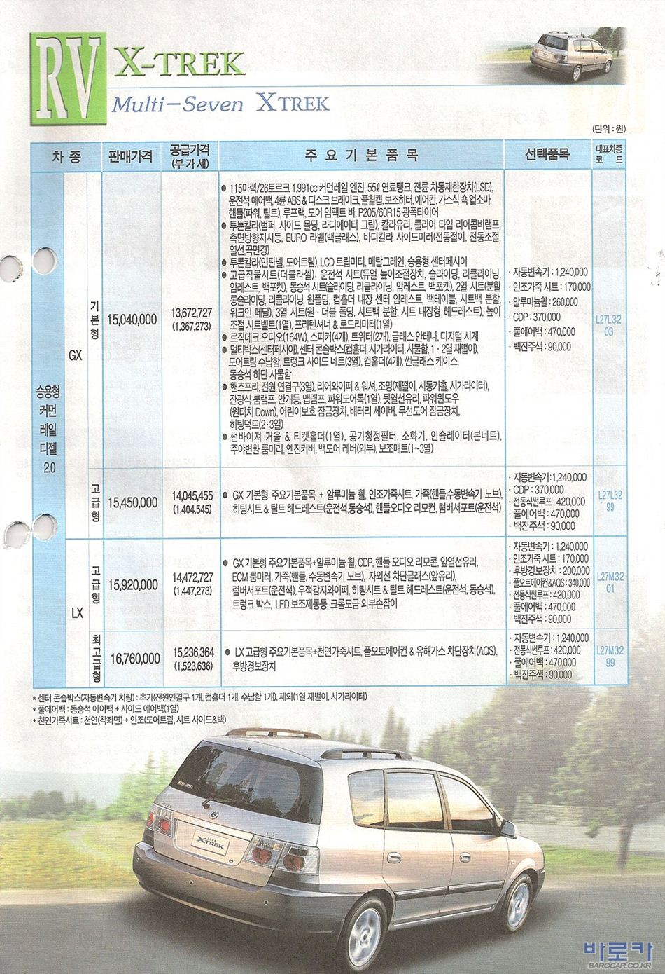 2005년 11월 엑스트랙 신차가격표 (2006년형)