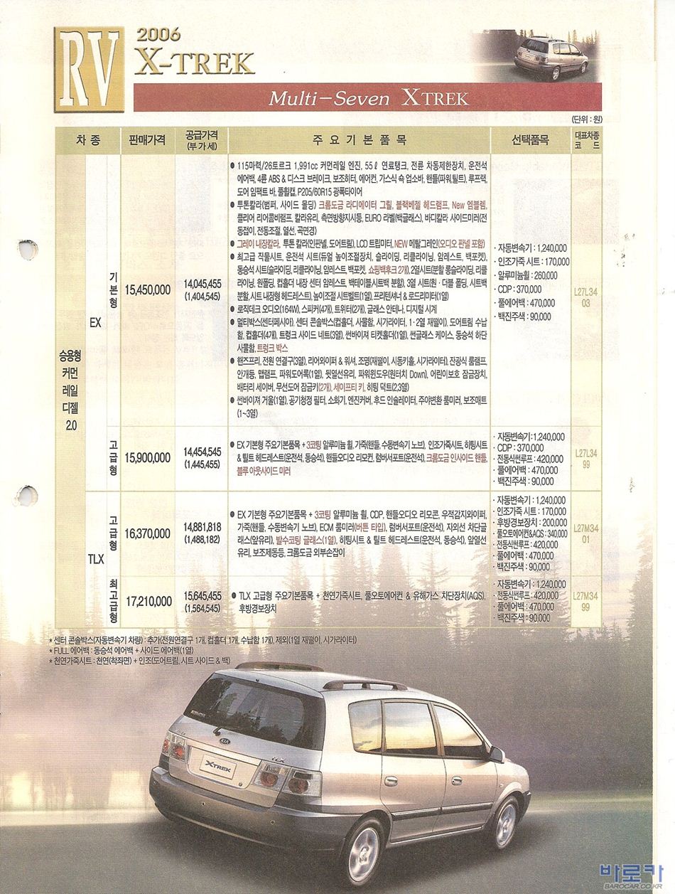 2005년 11월 엑스트랙 신차가격표 (2006년형)