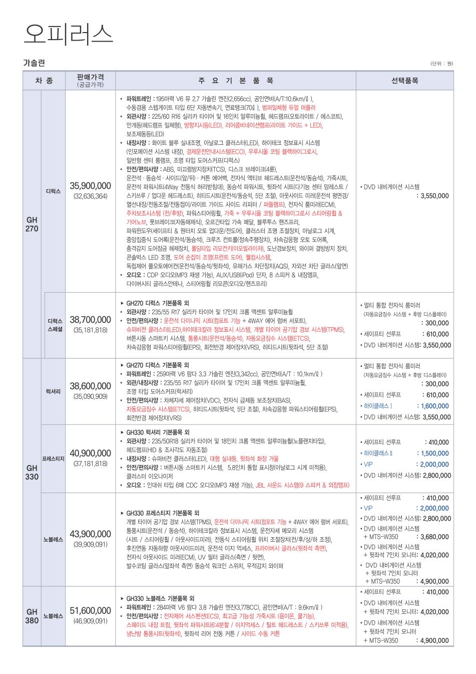 ※ 본 가격표의 모든 저작권은 해당 차량 제조사에 있습니다.