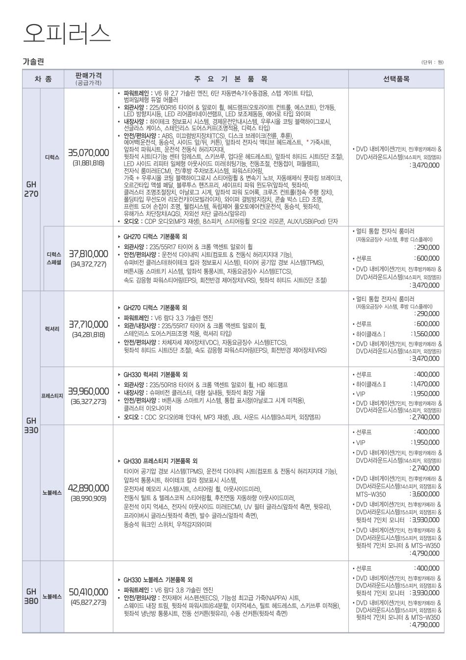 ※ 본 가격표의 모든 저작권은 해당 차량 제조사에 있습니다.