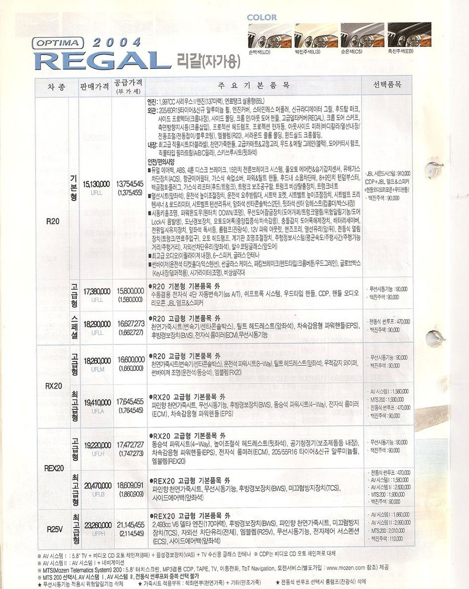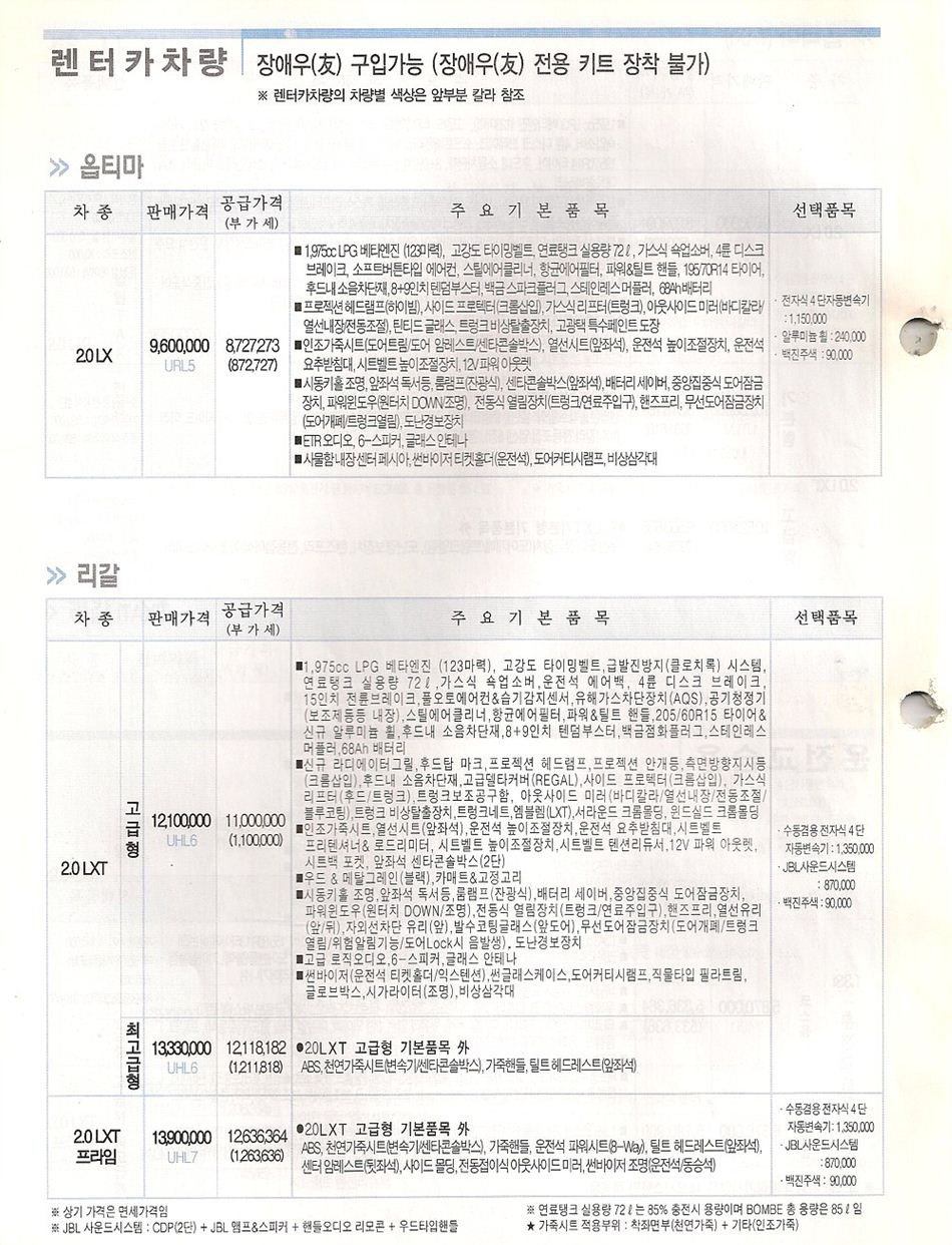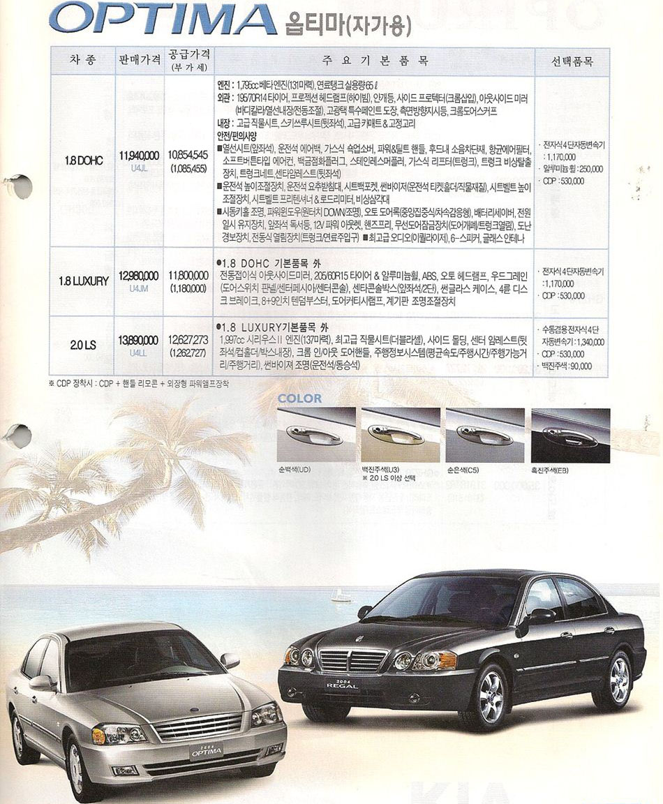 2004년 7월 옵티마 & 옵티마리갈 신차가격표