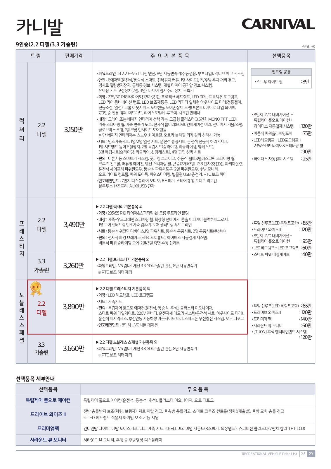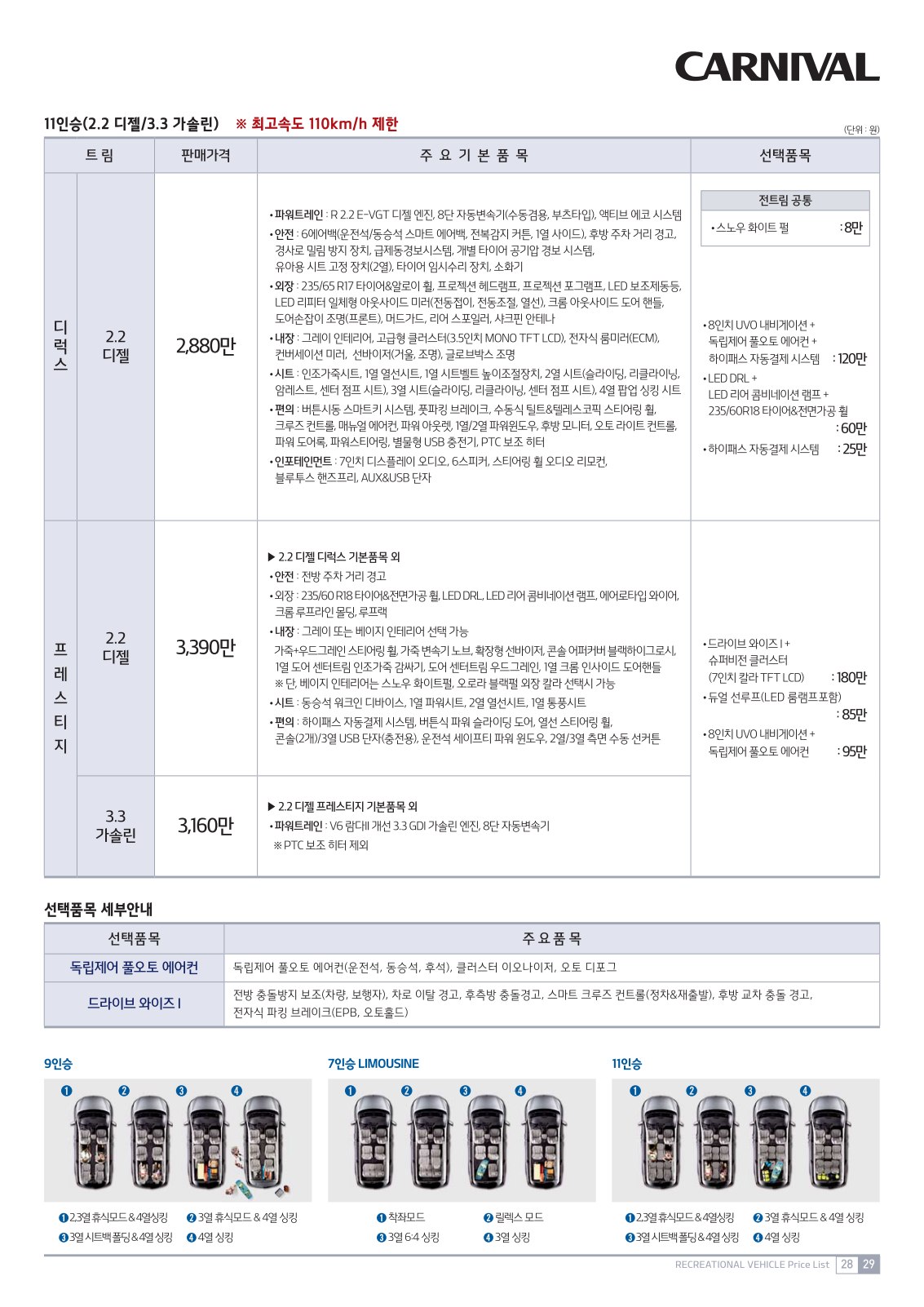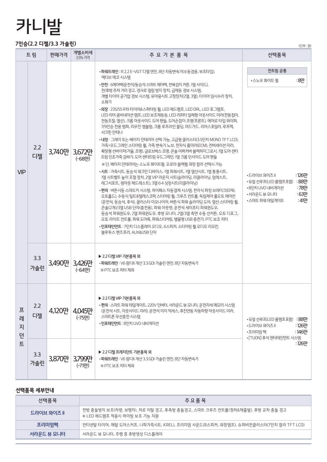 2019년 9월 카니발 신차가격표 (2020년형 카니발 출시)