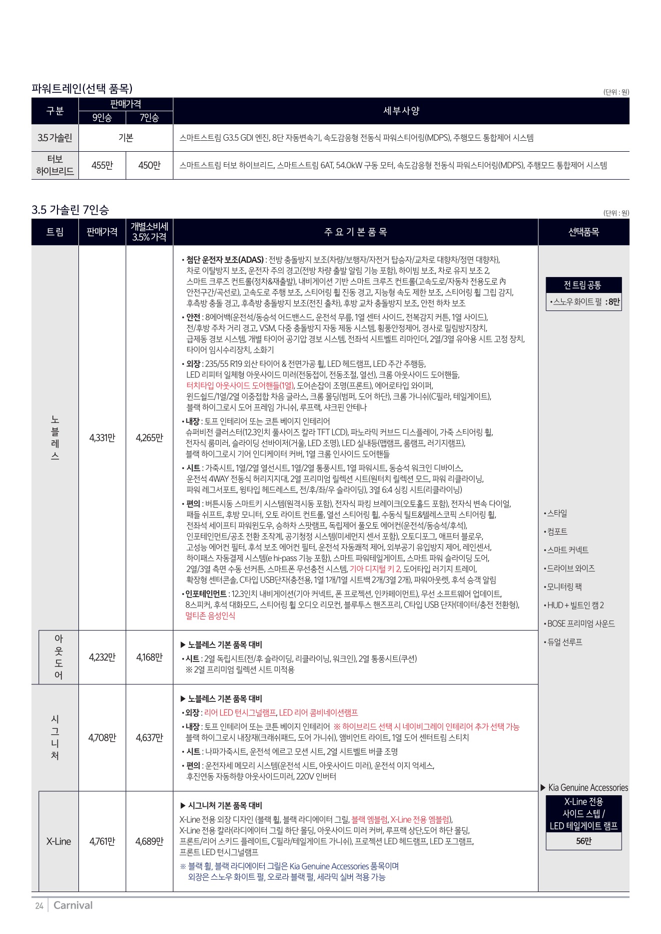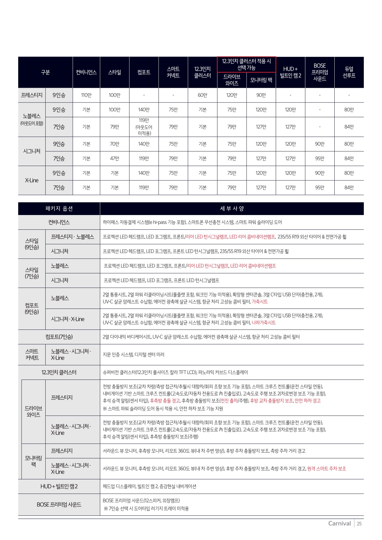 2025년 12월 카니발 신차가격표