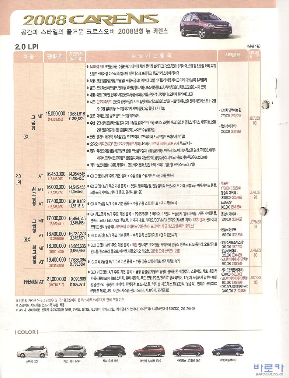 2009년 5월 뉴카렌스 신차가격표 (뉴페이스카렌스)