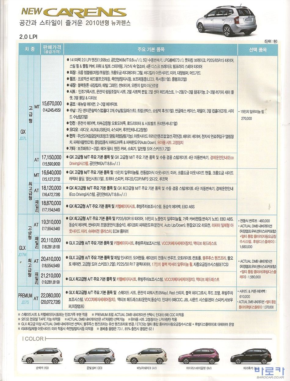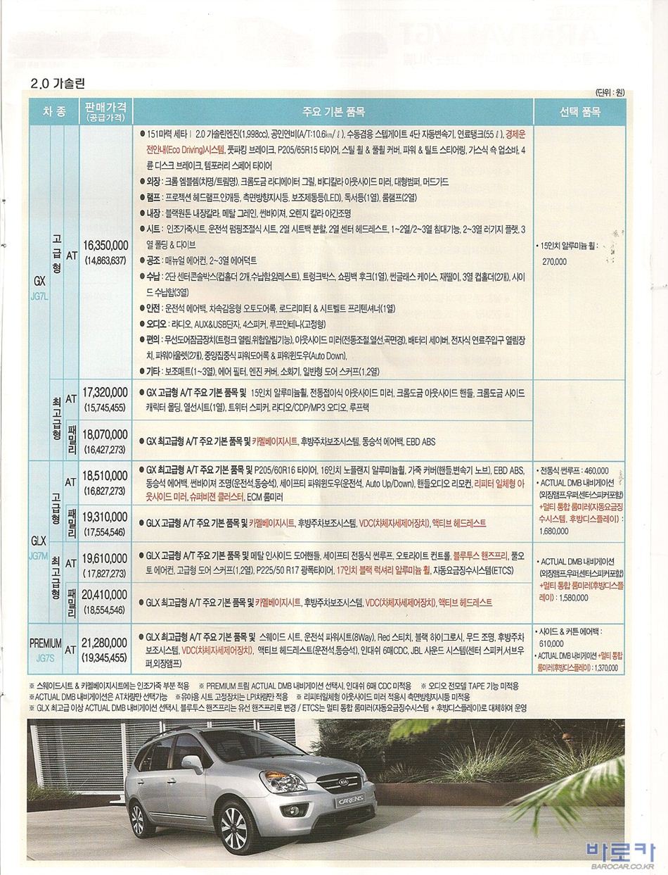 2009년 5월 뉴카렌스 신차가격표 (뉴페이스카렌스)