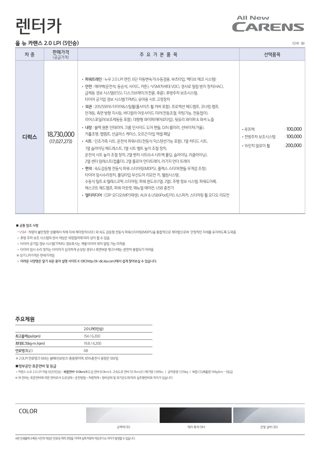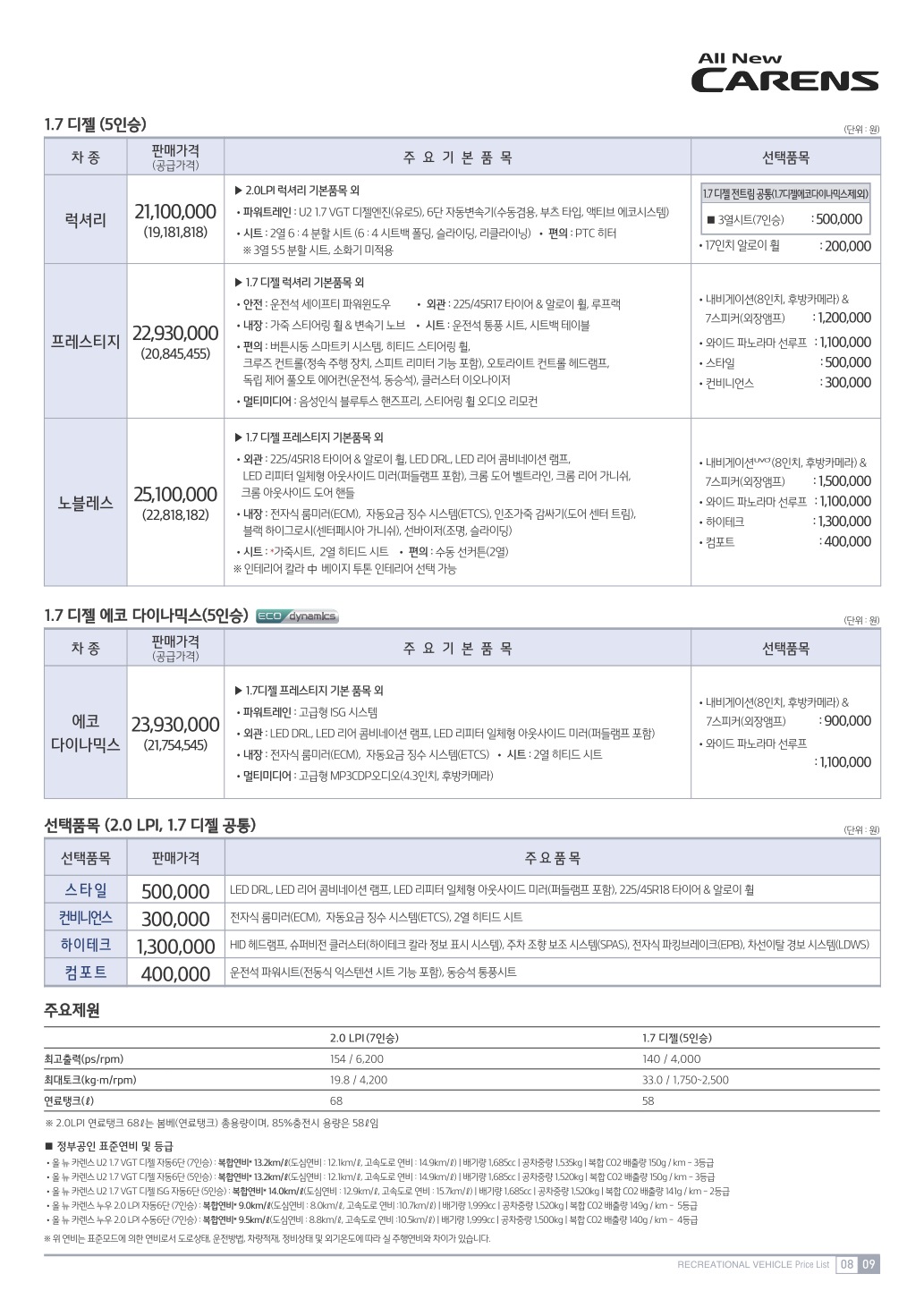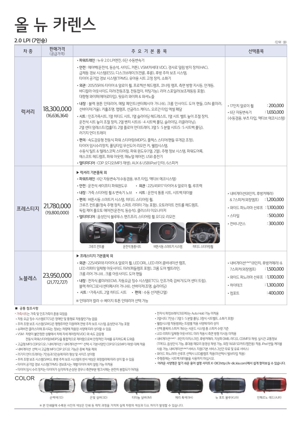 2013년 4월 올뉴카렌스(RP) 신차가격표