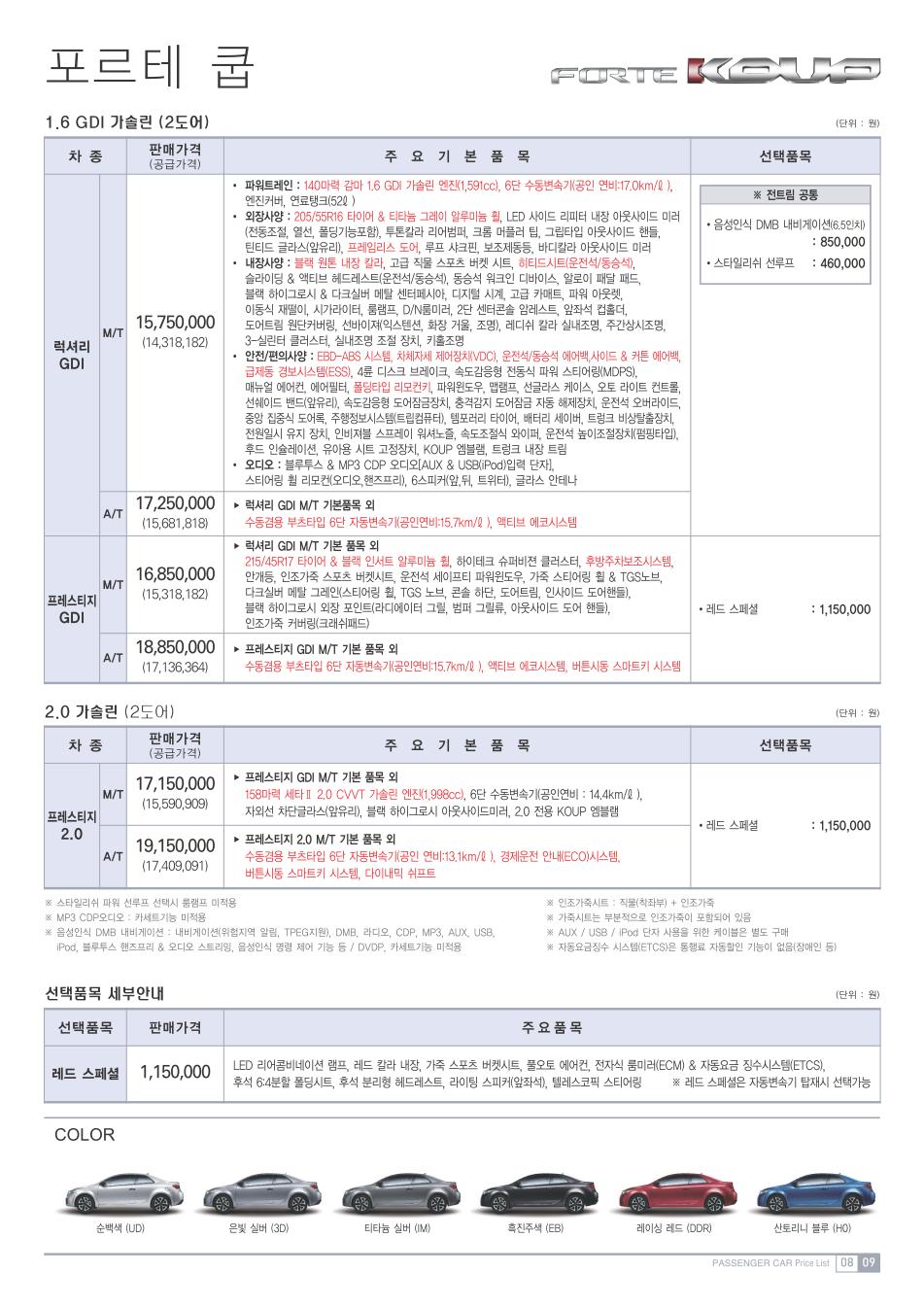 2011년 9월 포르테쿱 신차가격표