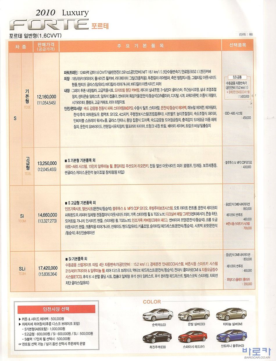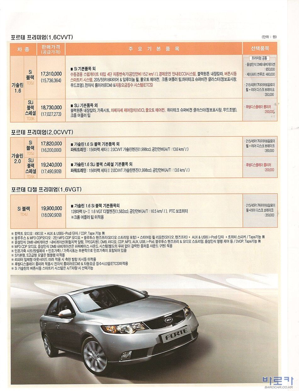 2009년 10월 포르테 LPi 하이브리드 신차가격표