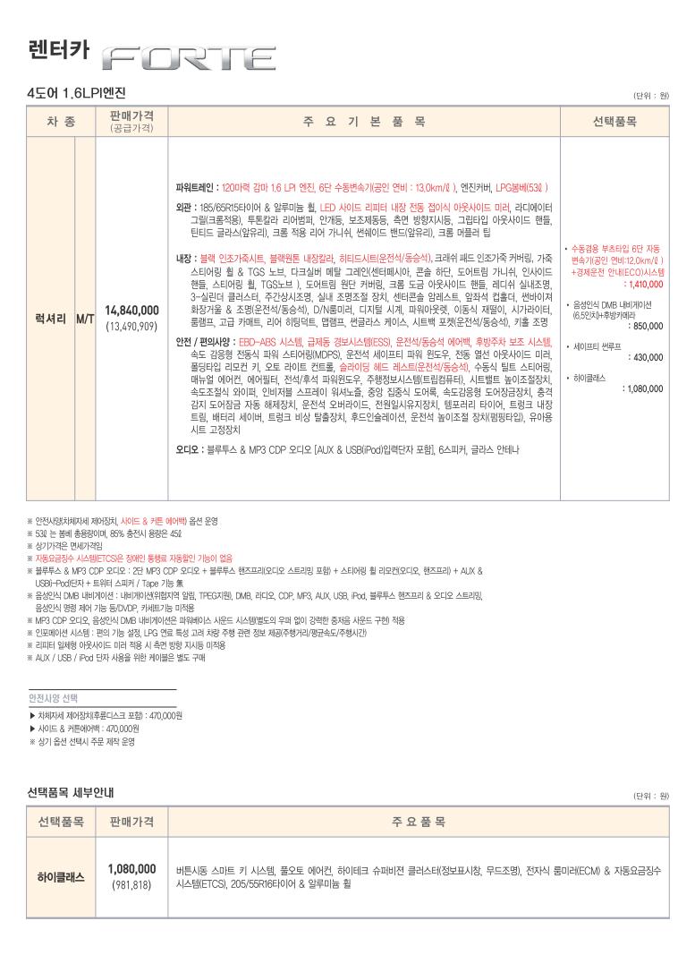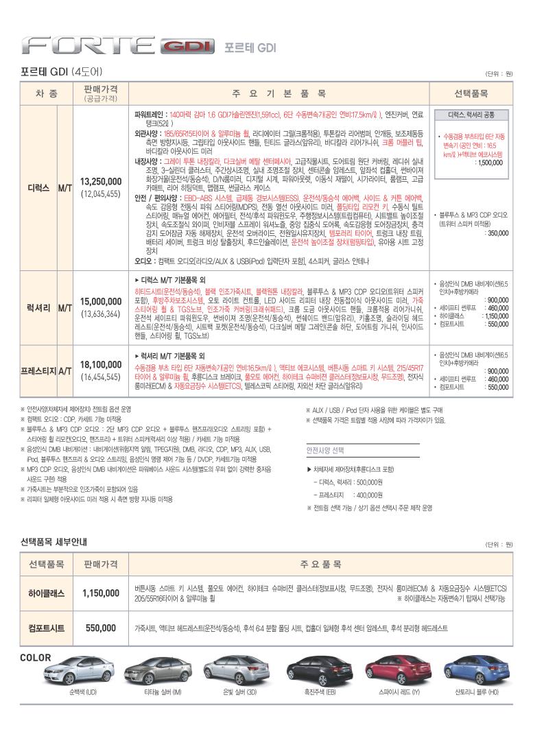 2010년 9월 포르테 신차가격표 (포르테 GDi 출시)
