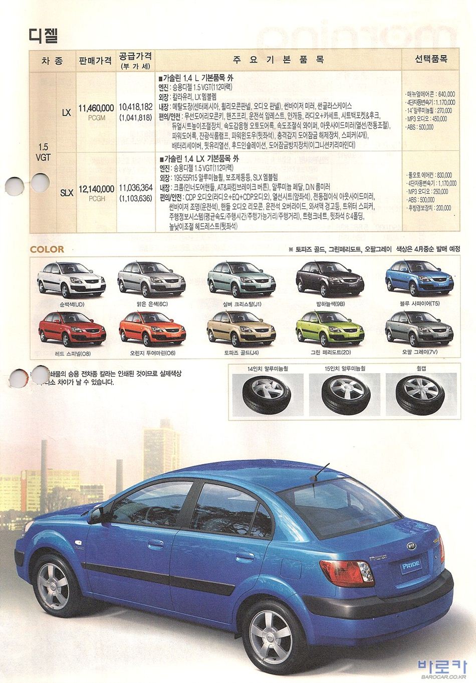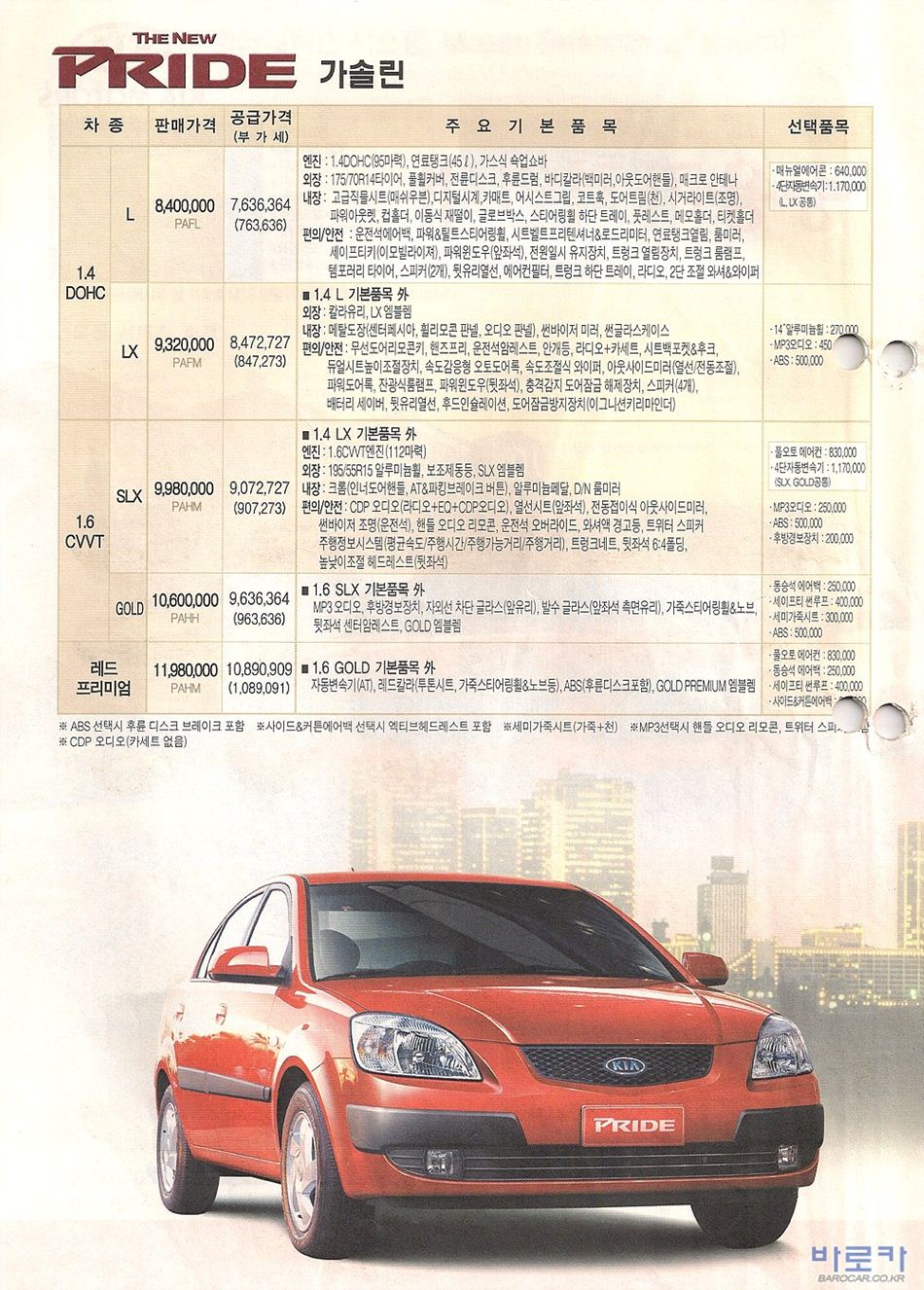 2005년 11월 뉴프라이드(JB) 신차가격표