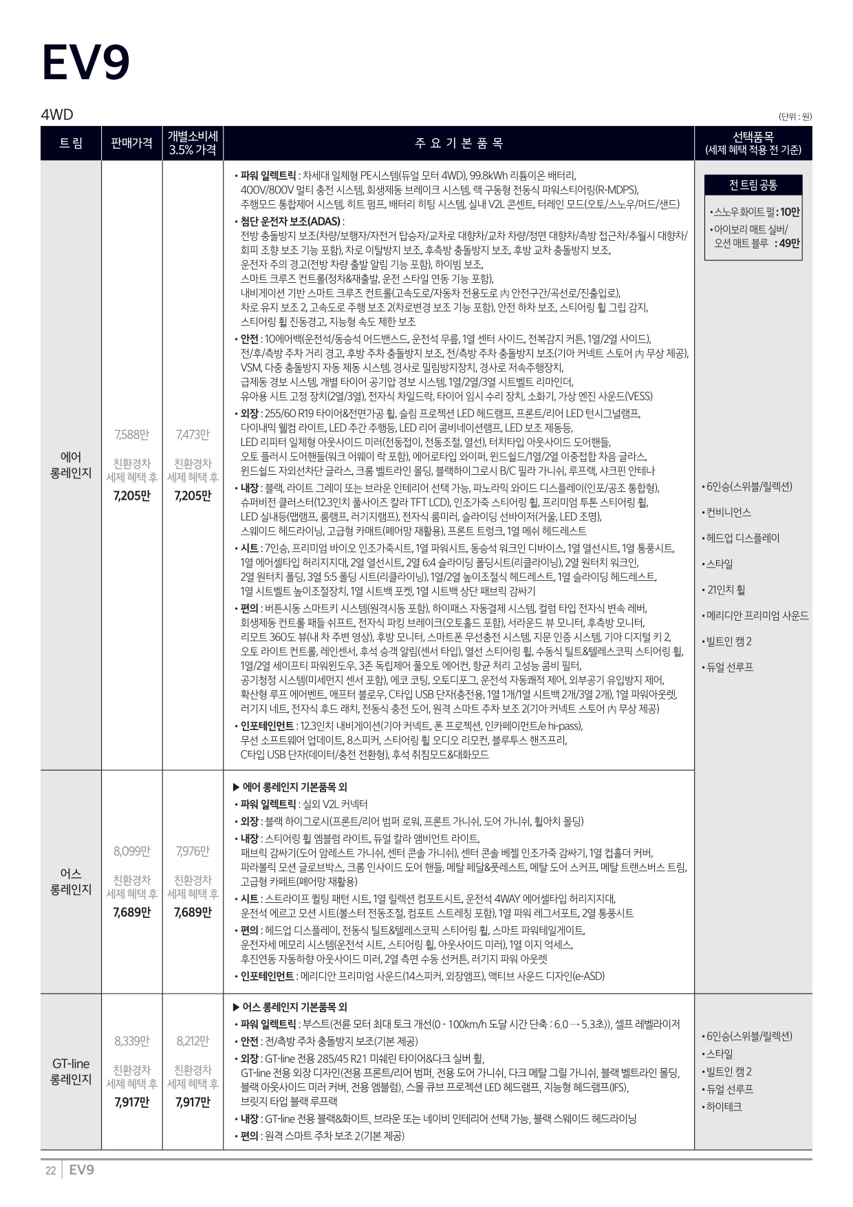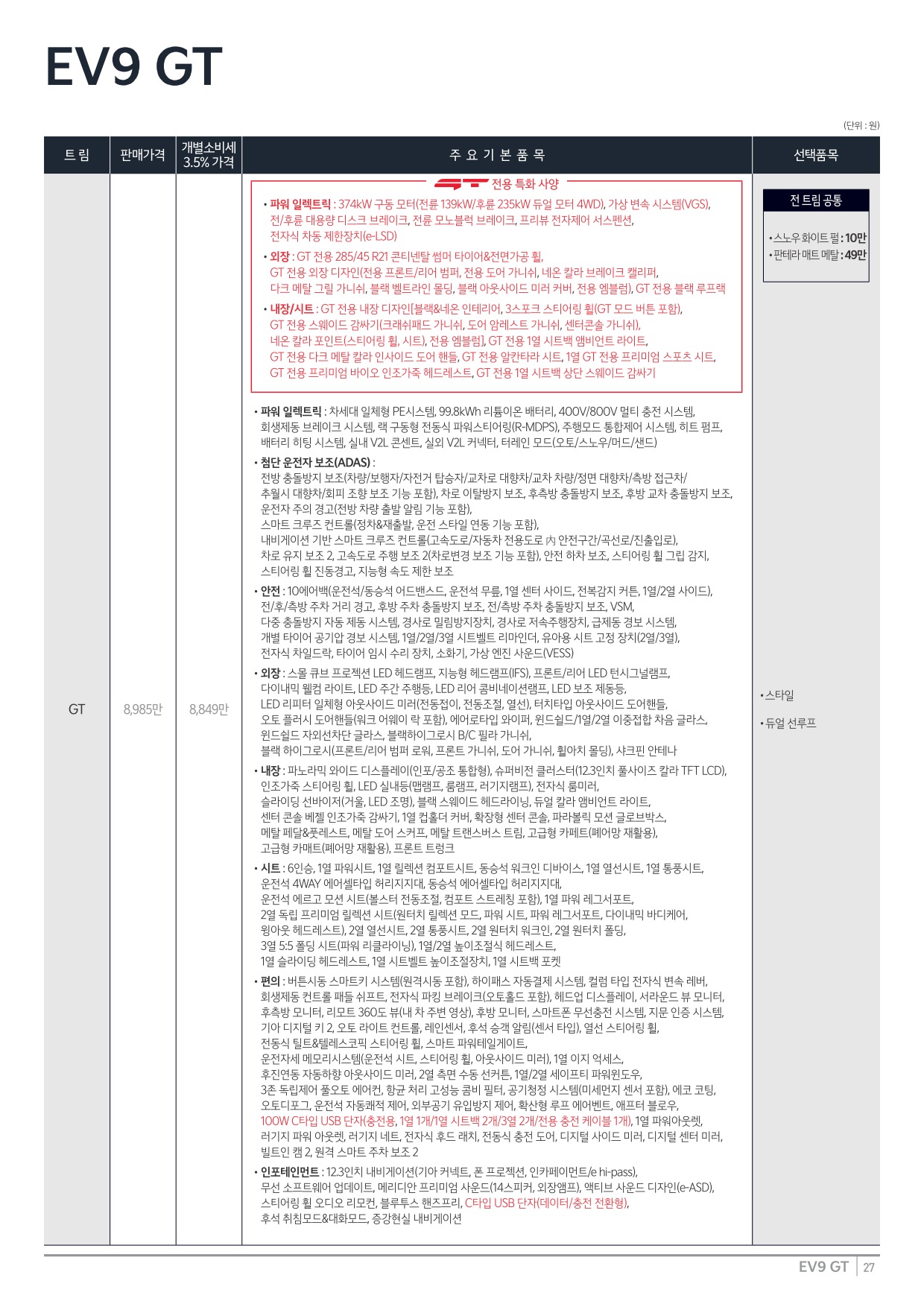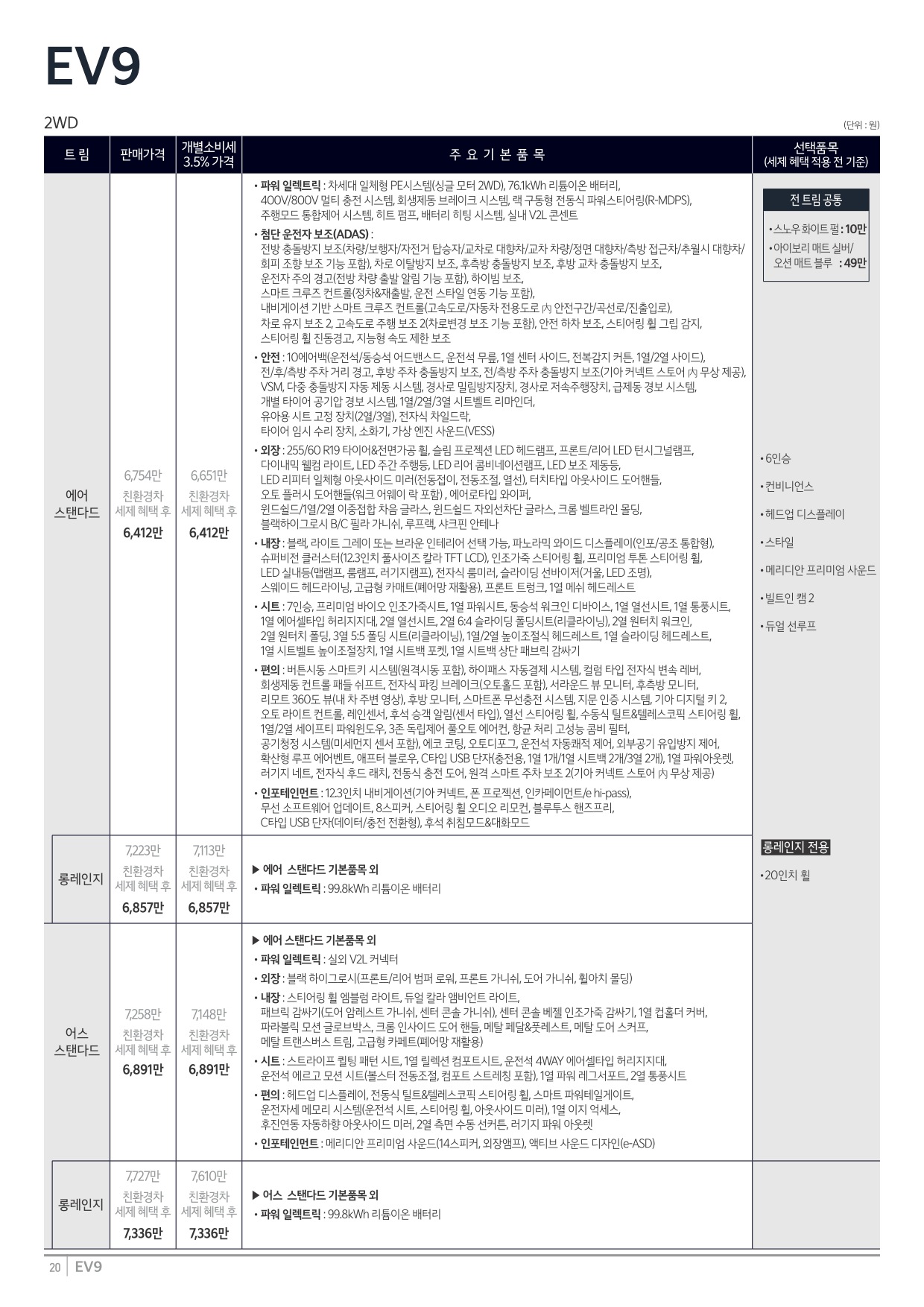 2025년 2월 EV9 신차가격표 (EV9 GT , 스탠다드 출시)