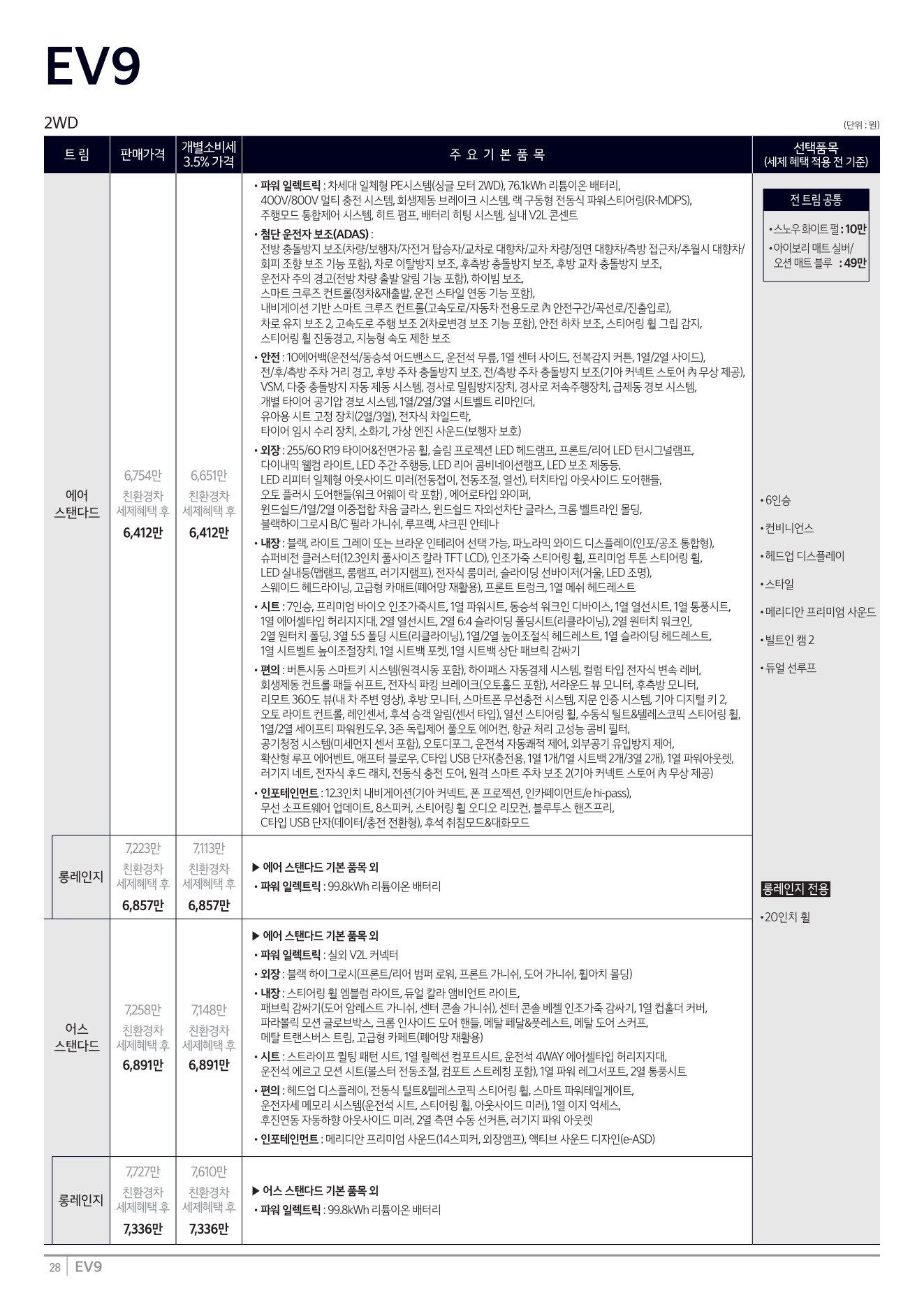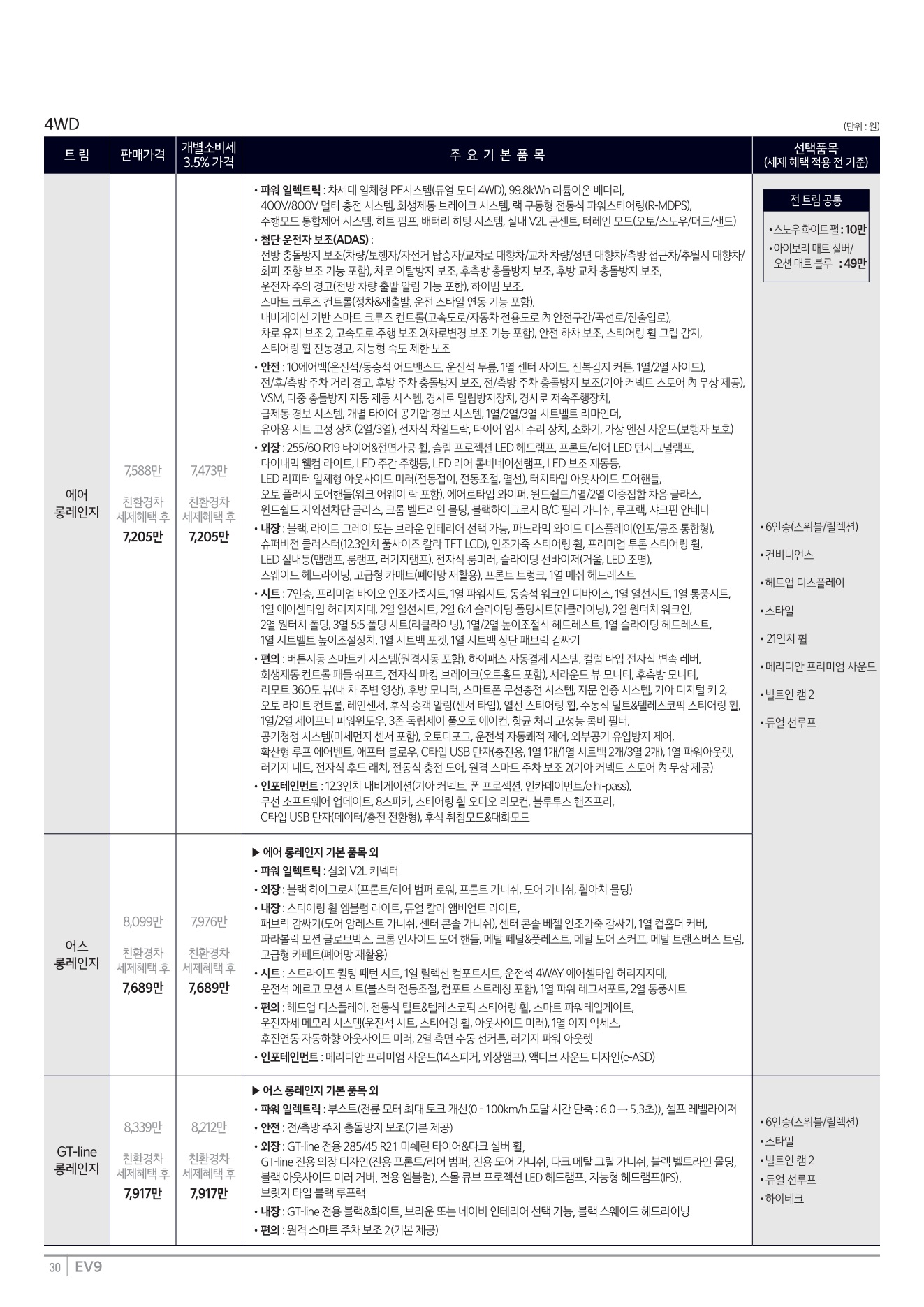 2025년 12월 EV9 신차가격표