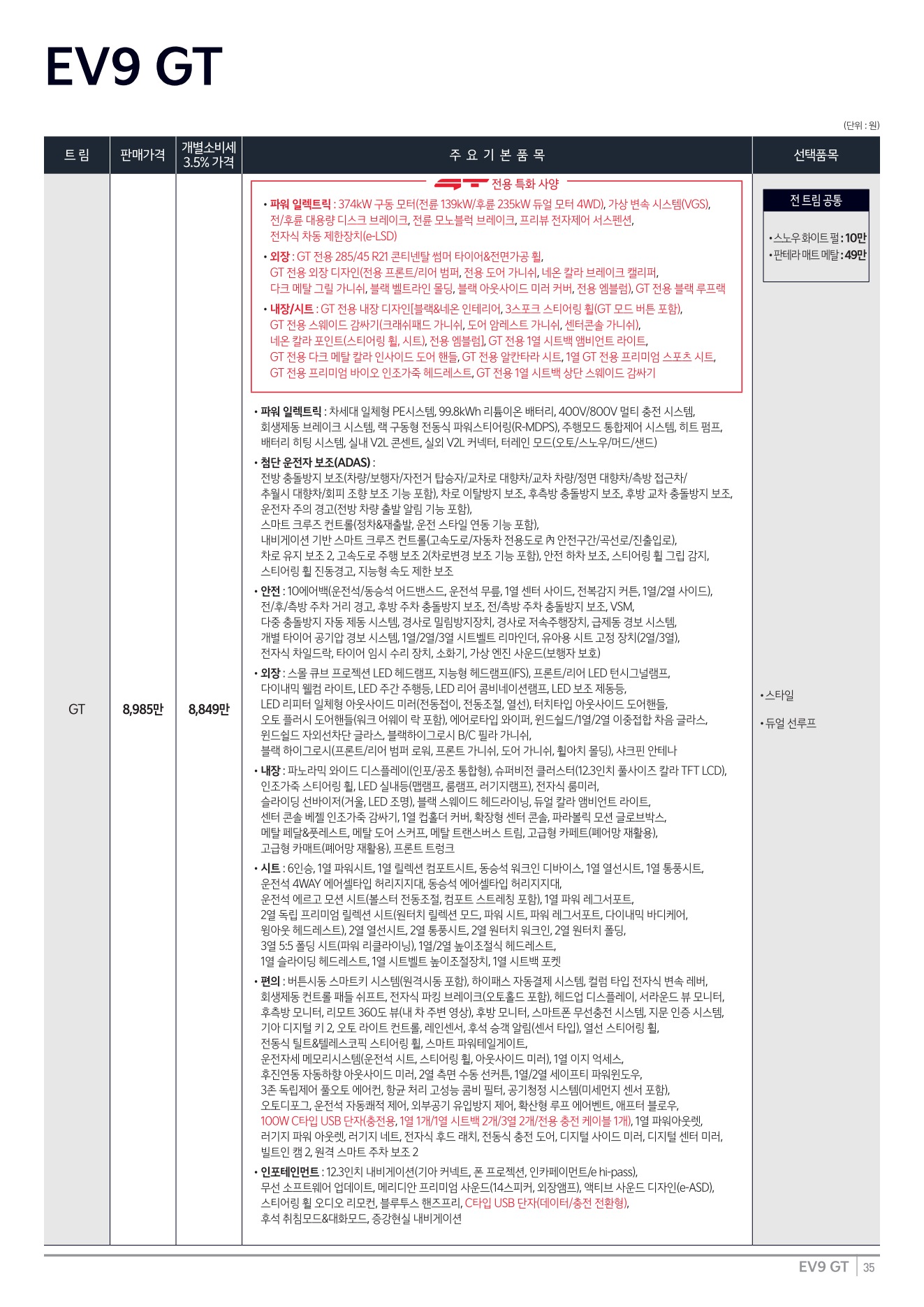 2025년 12월 EV9 GT 신차가격표