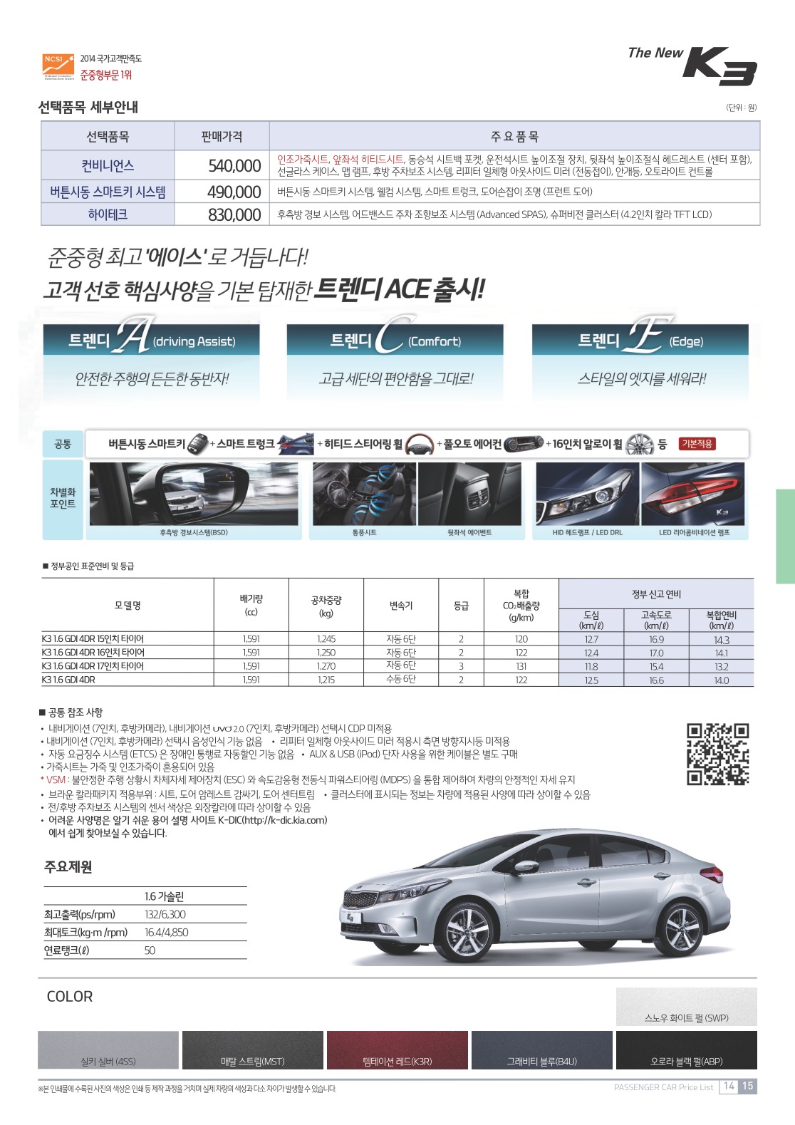 2016년 3월 K3 쿱 신차가격표