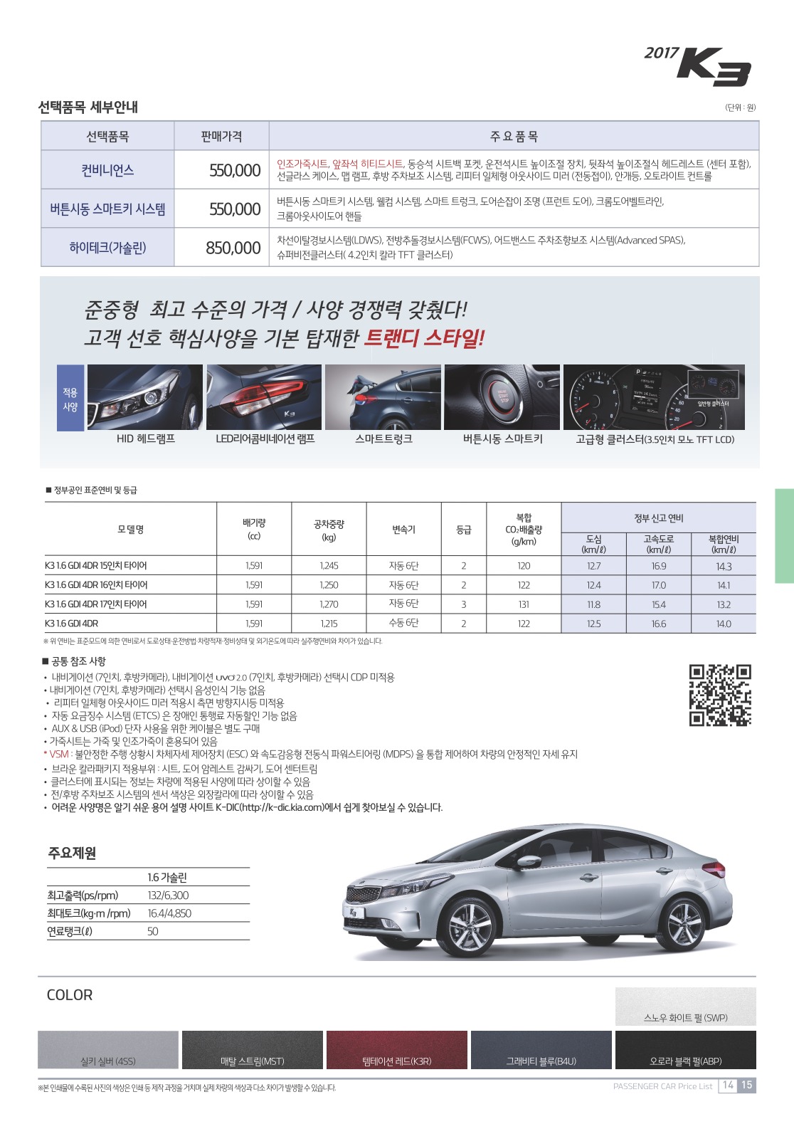 2017년 5월 K3 신차가격표 (K3 세단, K3 유로 신차가격표)