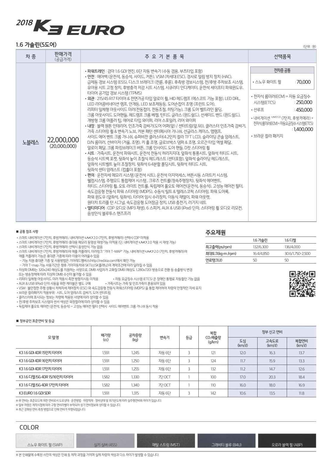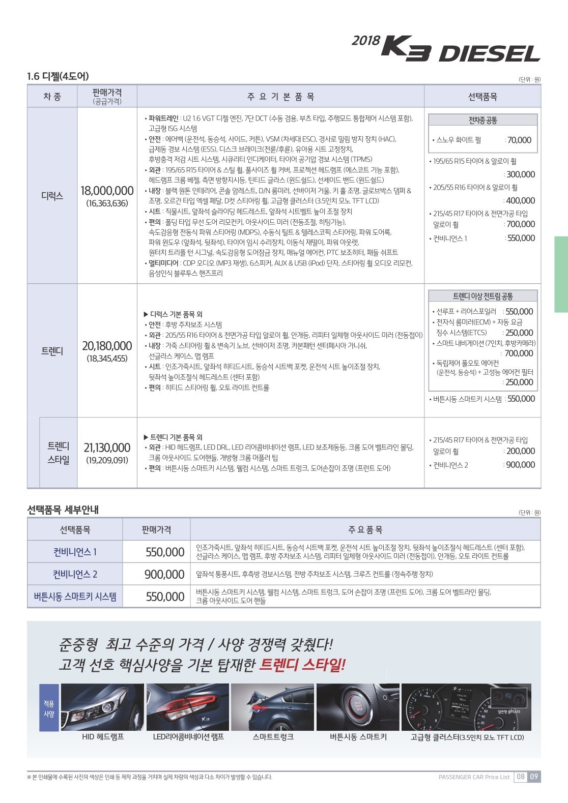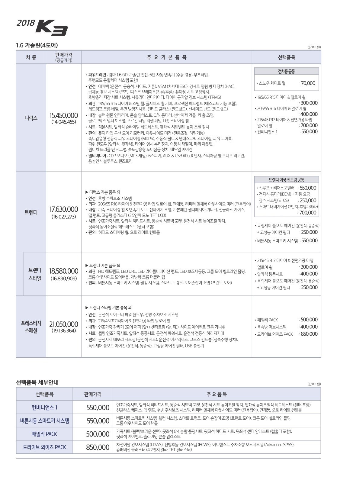2018년 2월 K3 신차가격표 (올뉴 K3)