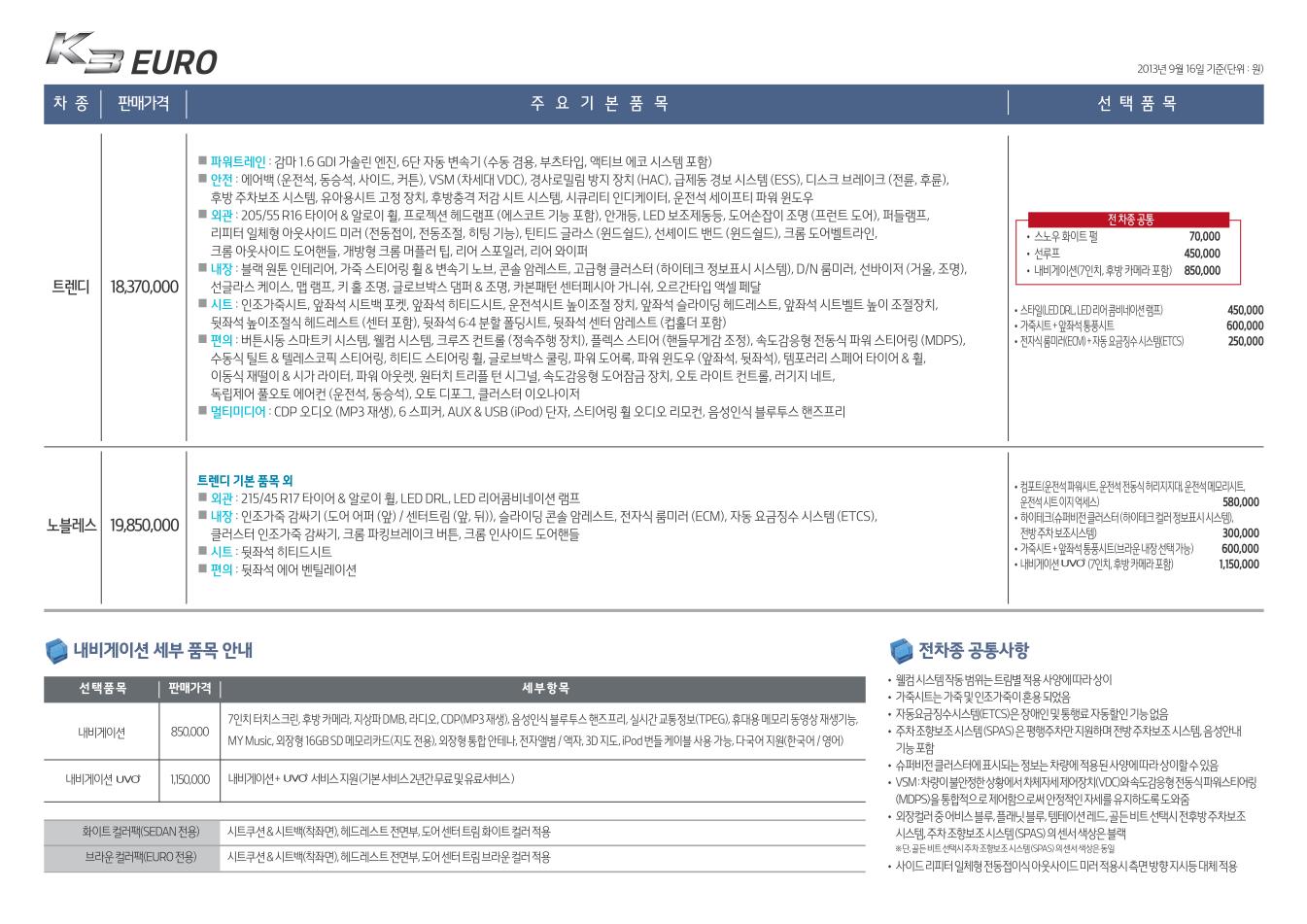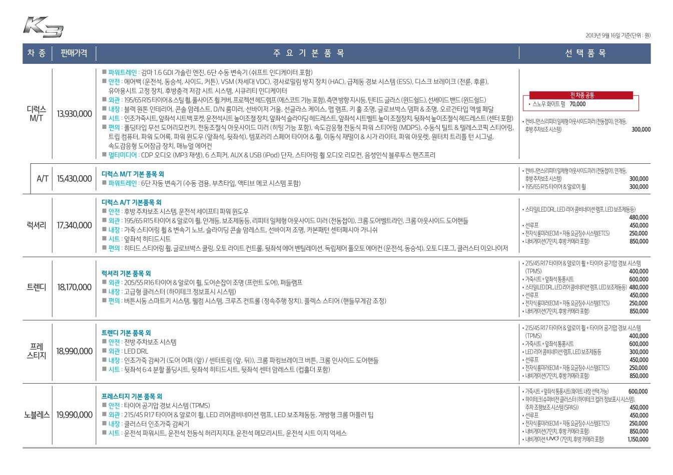 2013년 9월 K3 신차가격표