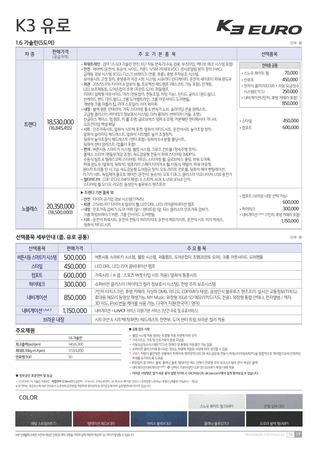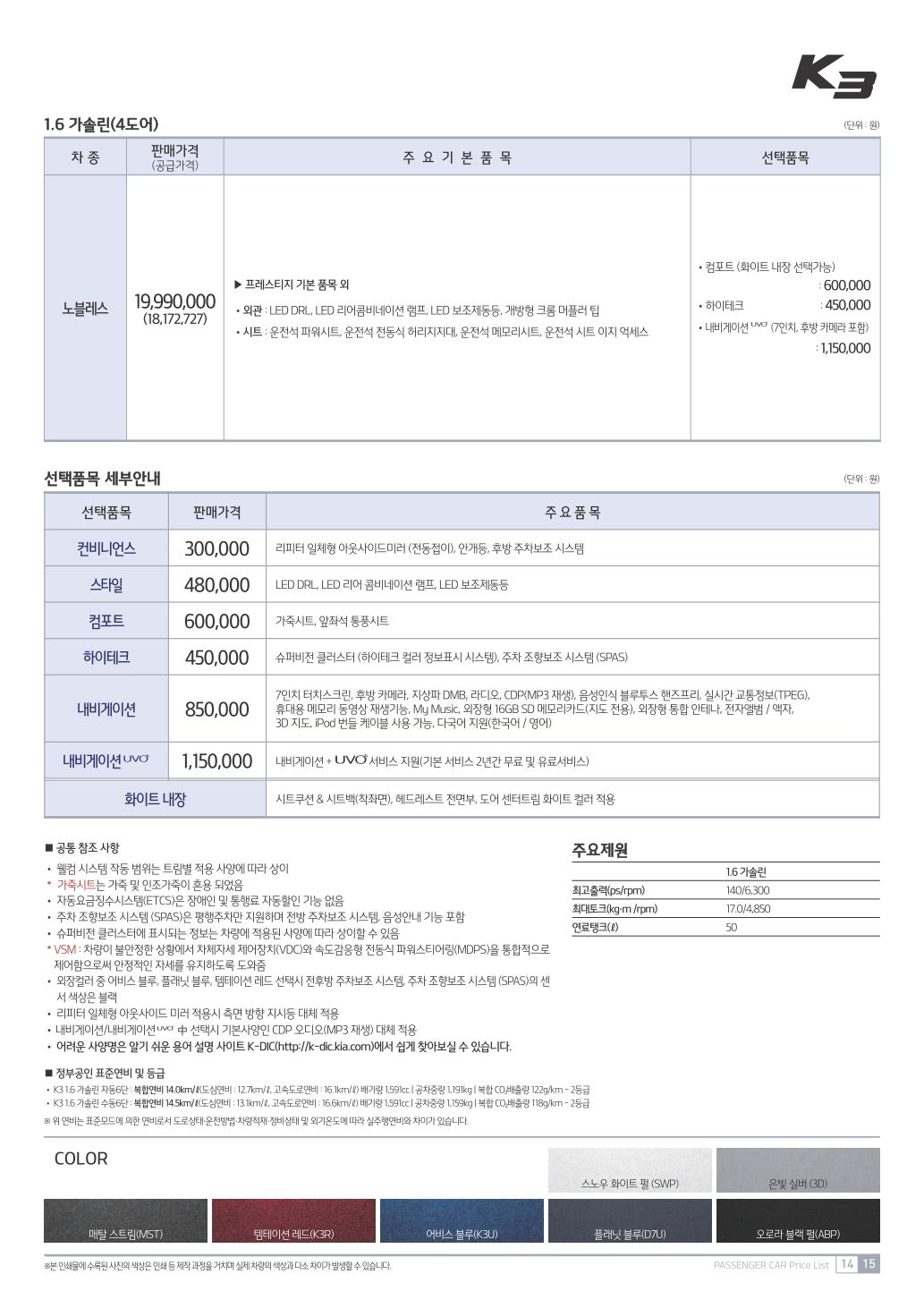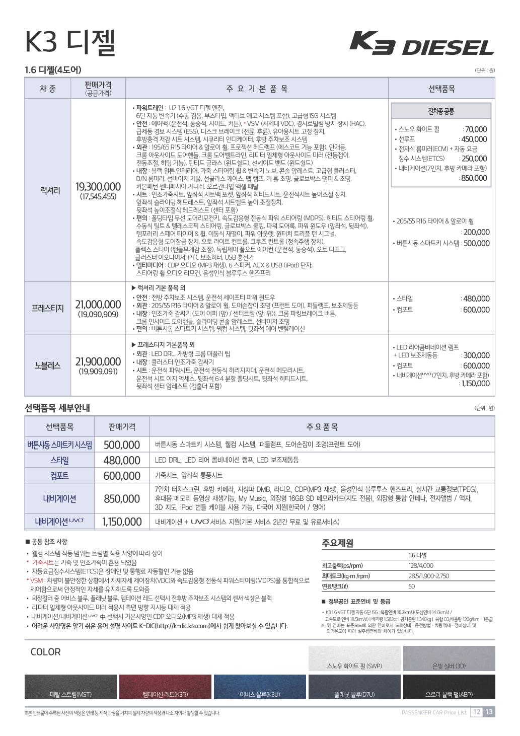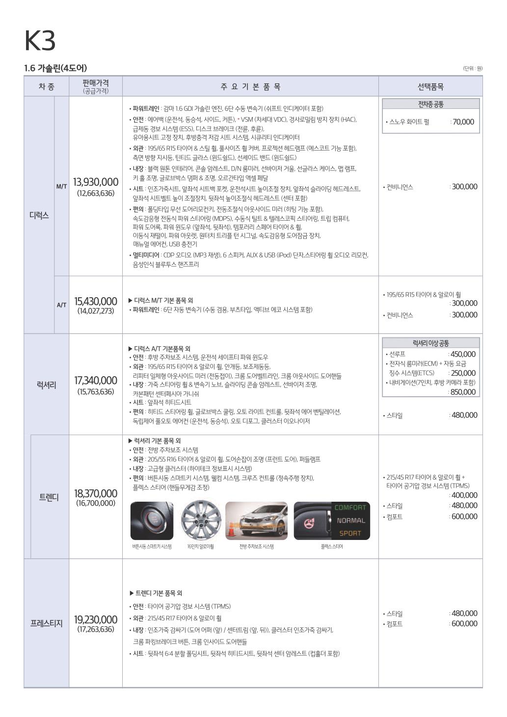 2014년 12월 K3 신차가격표 (K3 세단, K3 쿱, K3 유로 신차가격표)