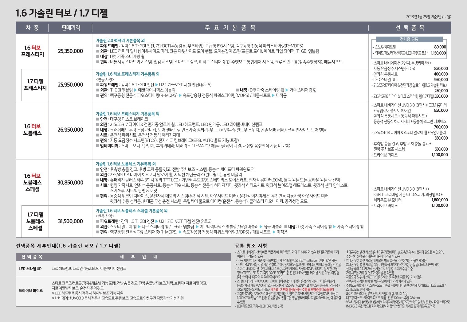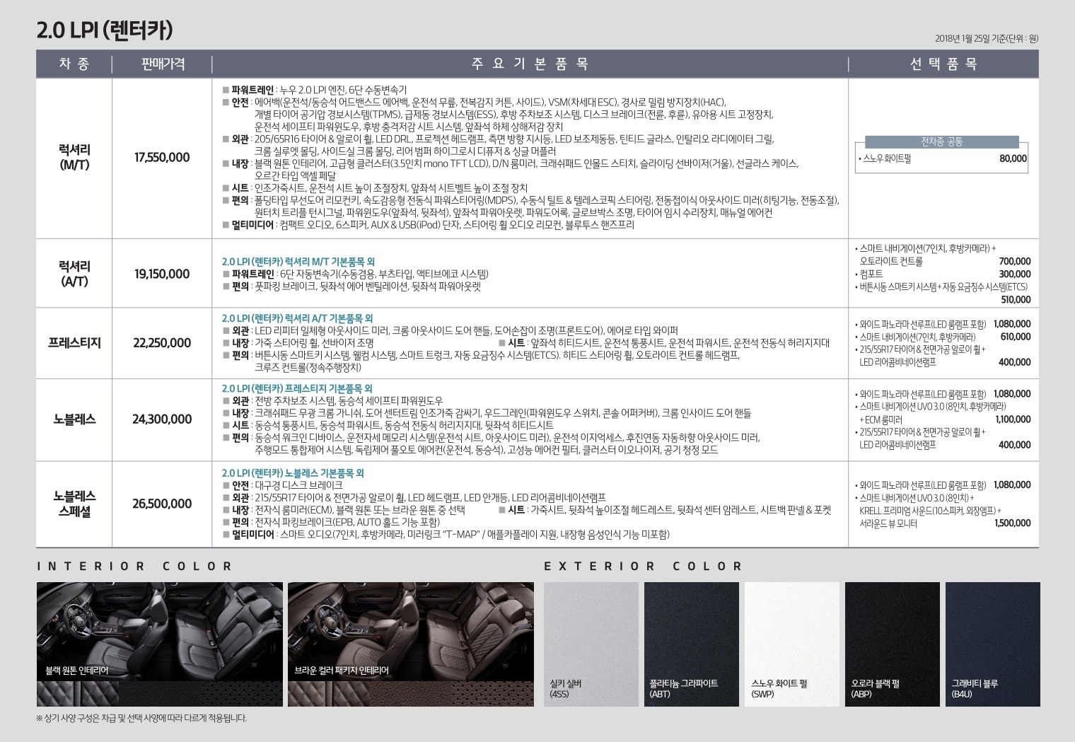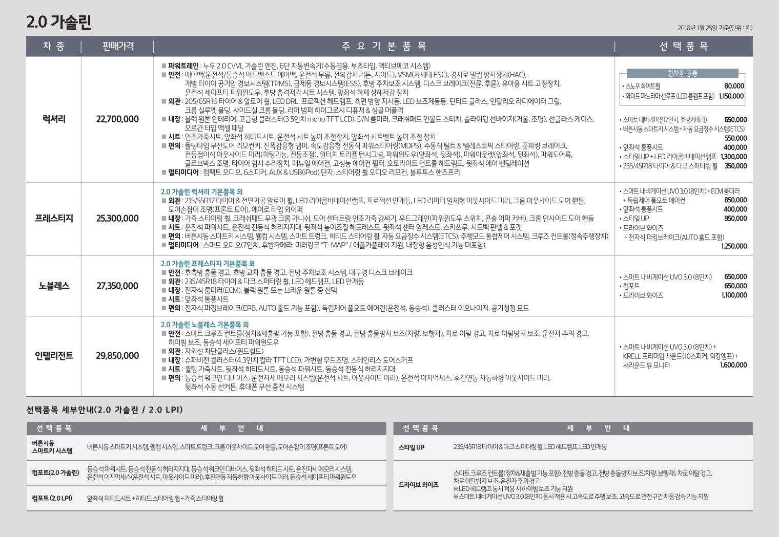 2018년 1월 K5 신차가격표