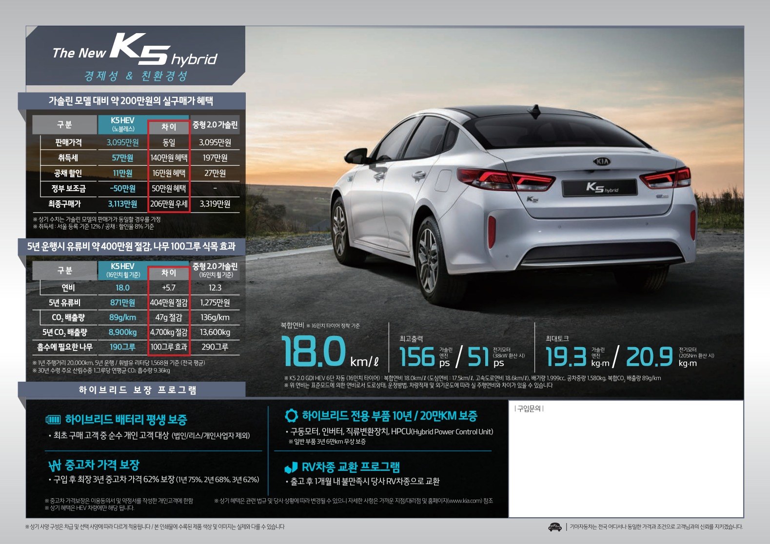 2018년 5월 K5 하이브리드 신차가격표 (더뉴K5 하이브리드 신차가격표)