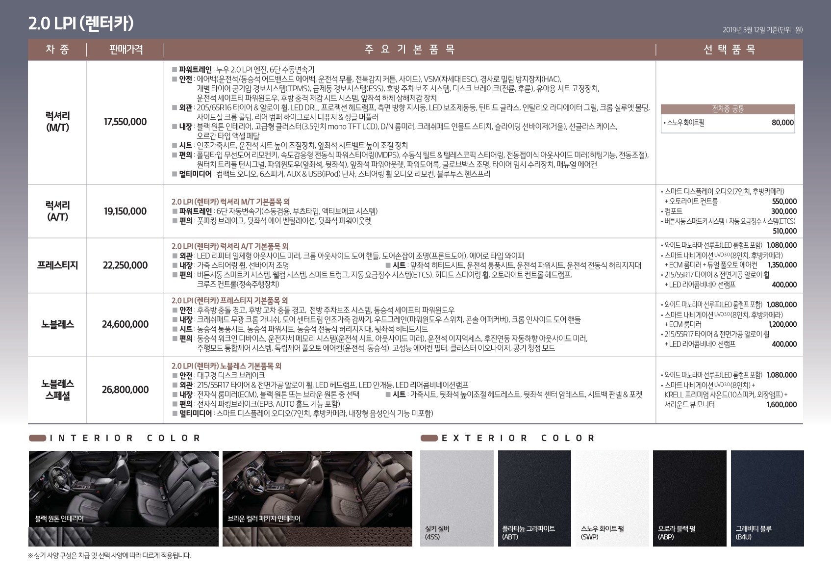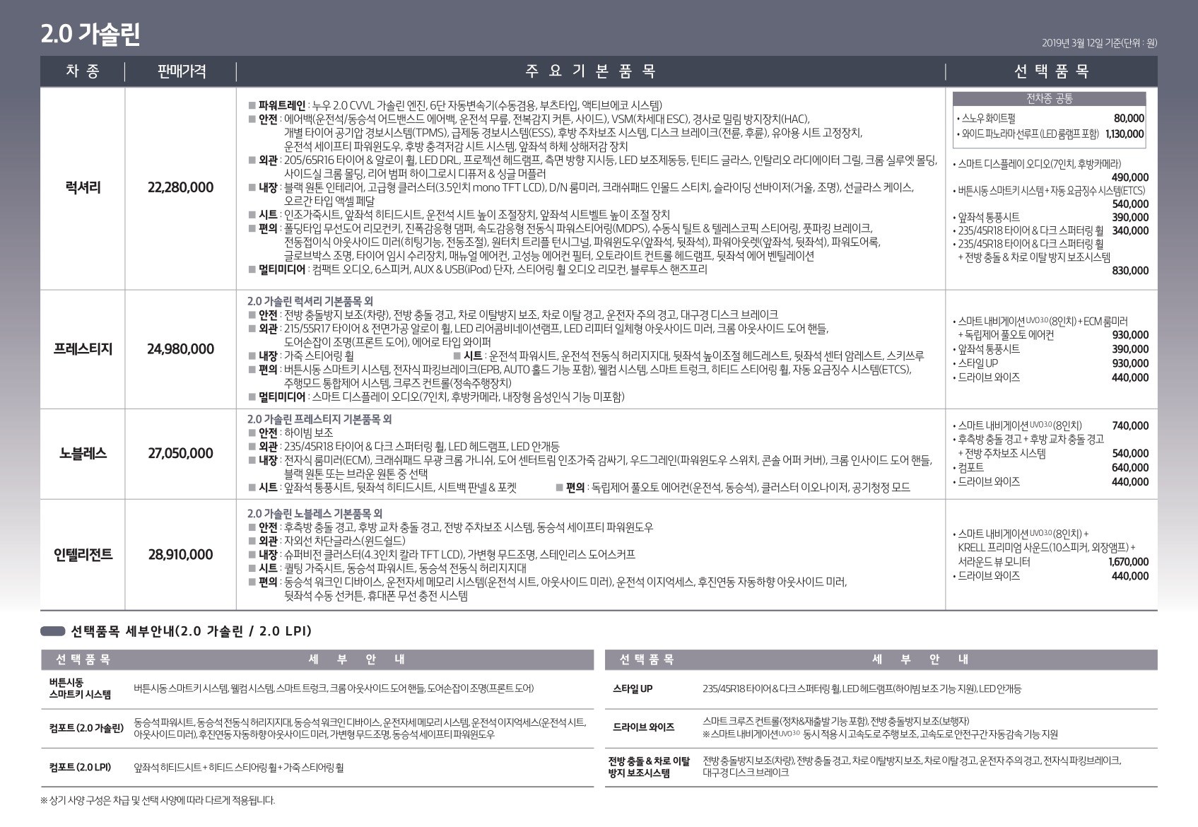 2019년 4월 K5 신차가격표 (LPG 일반인 구매 출시)
