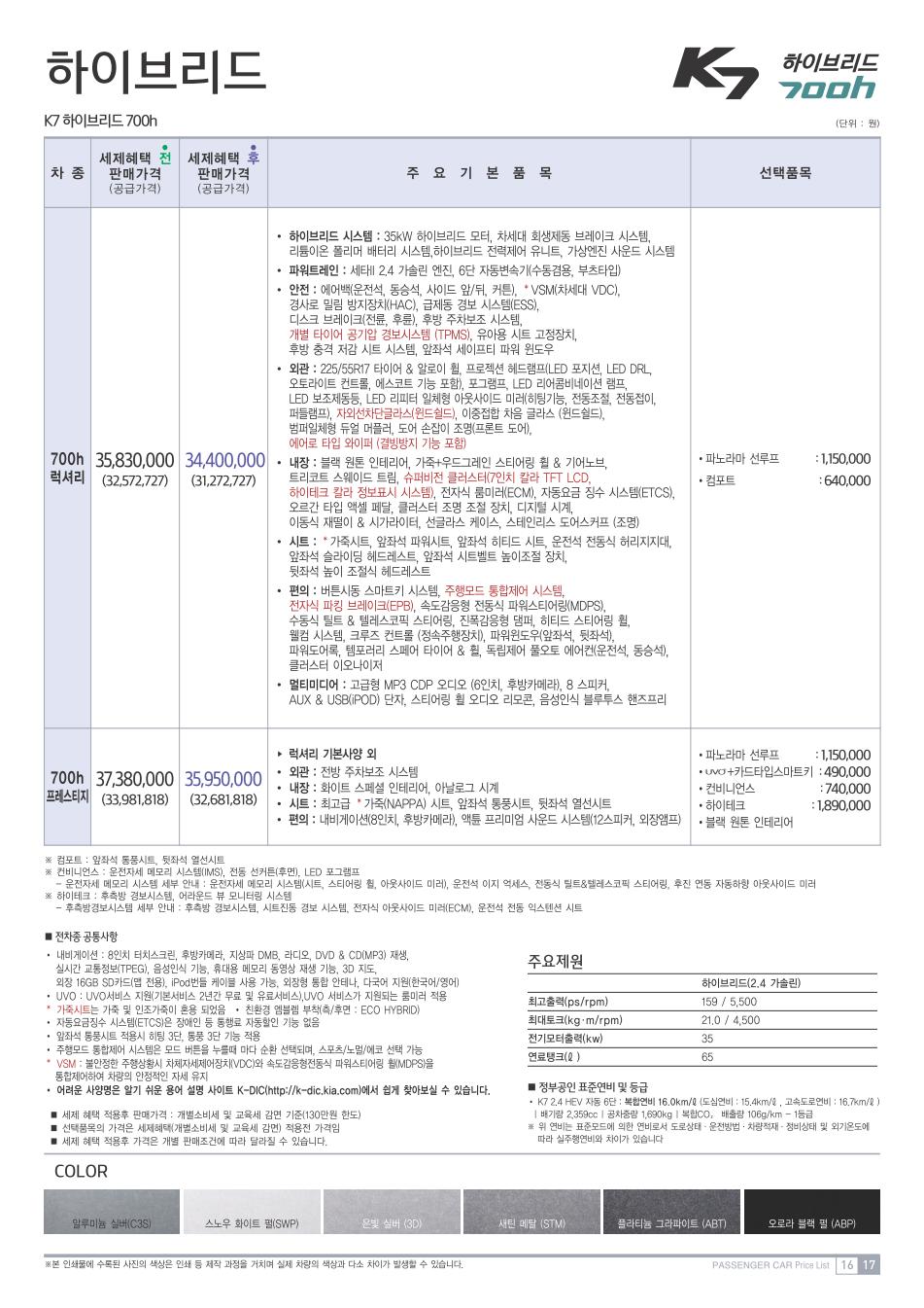 2012년 11월 K7 신차가격표 (더 뉴 K7)