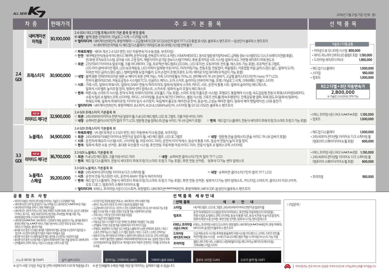 2016년 1월 K7 신차가격표 (올 뉴 K7)
