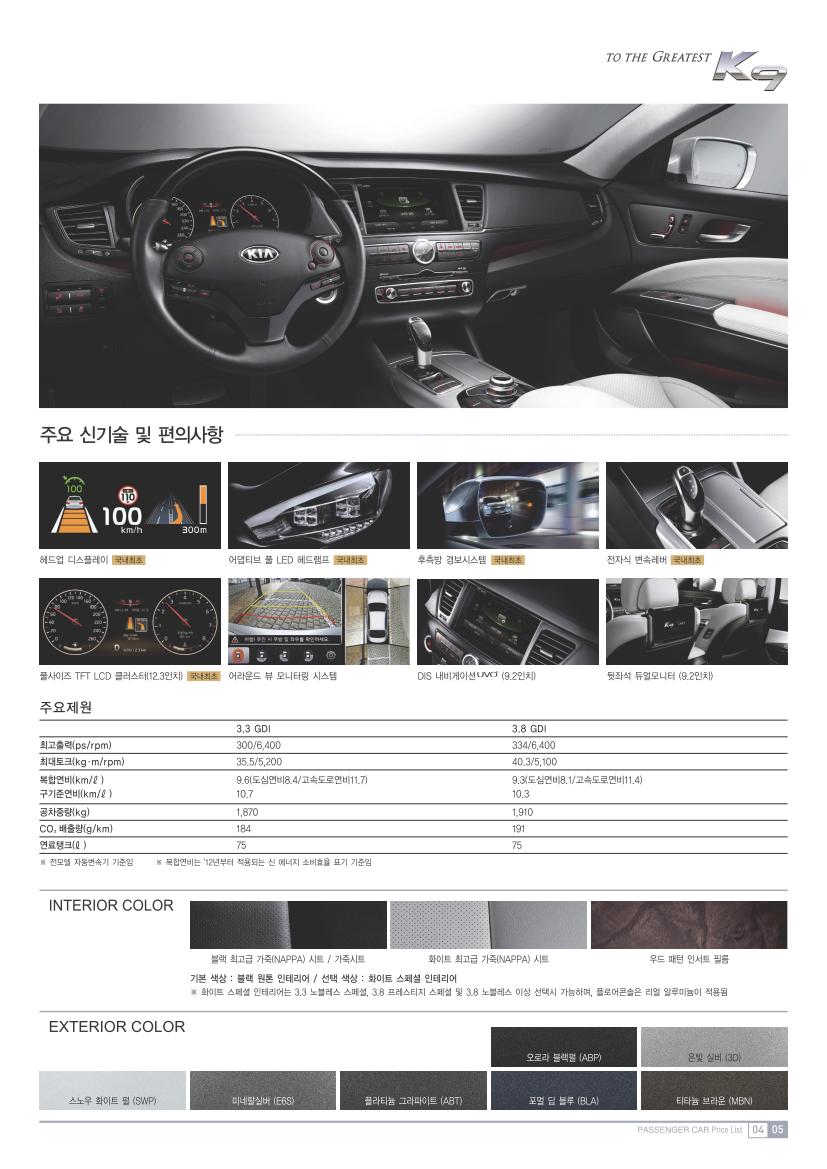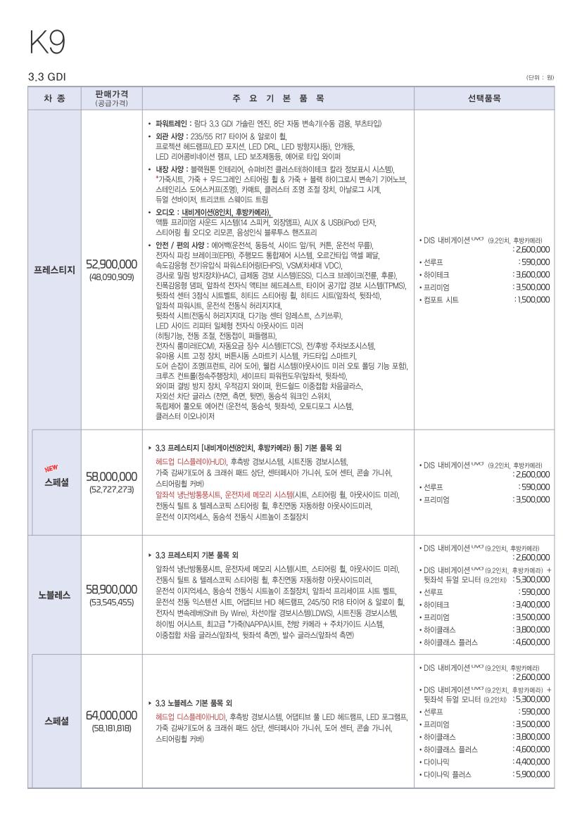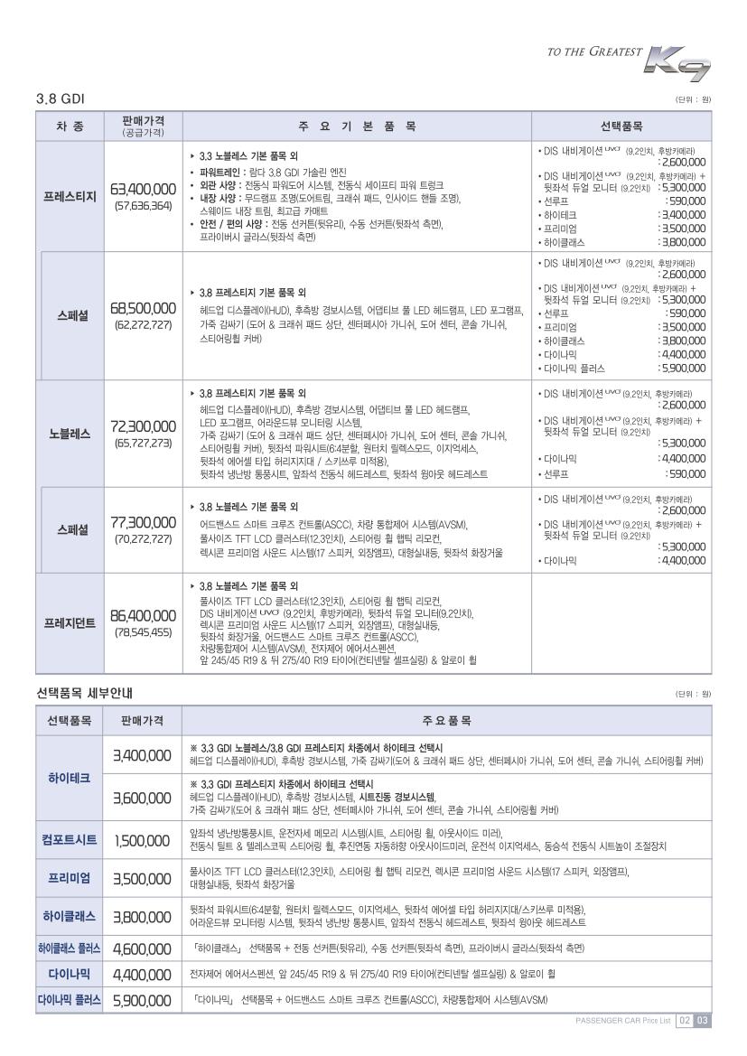 2012년 7월 K9 신차가격표 (스페셜 프레스티지 추가)