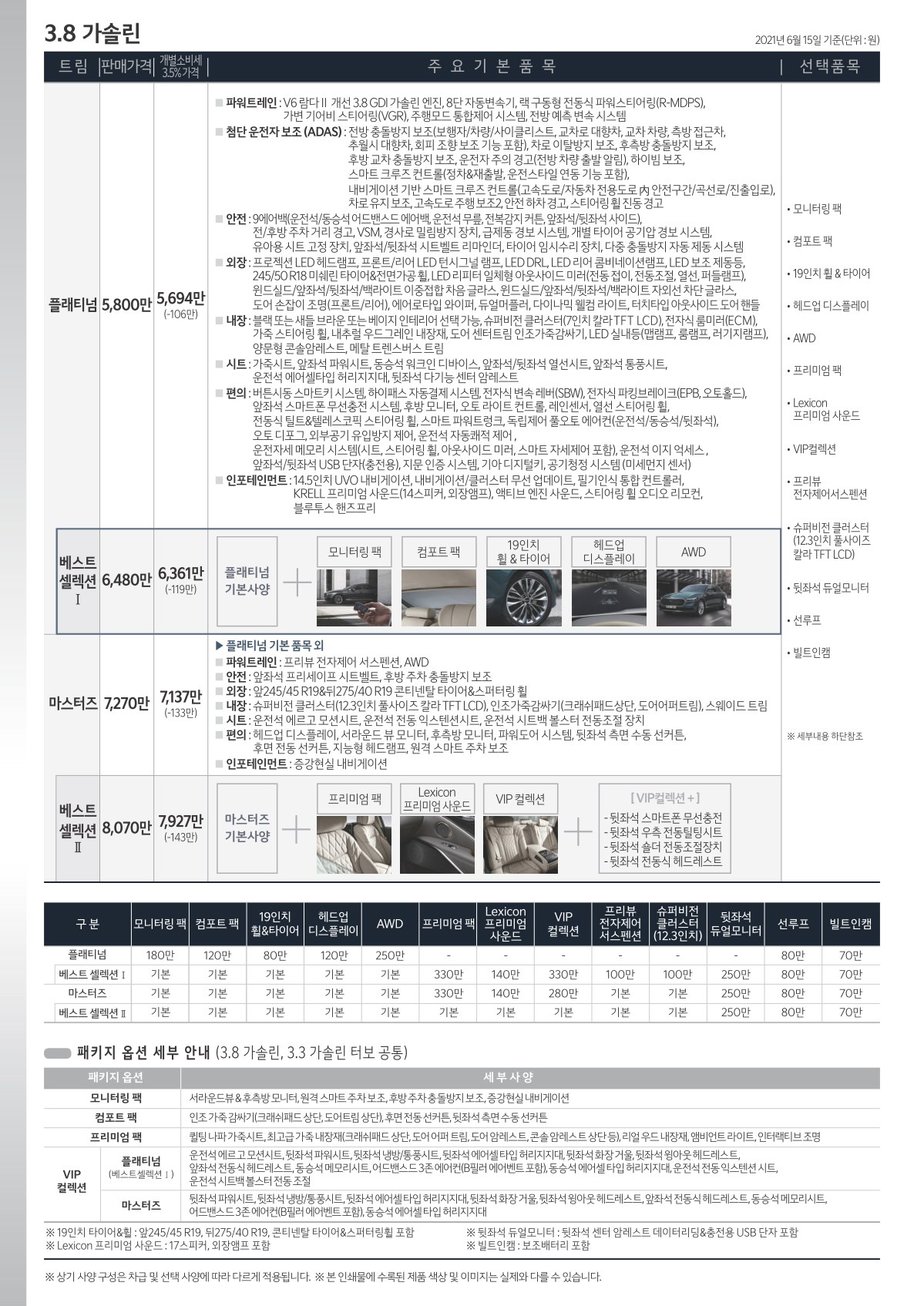 2020년 4월 K9 신차가격표 (2021년형 K9 출시 가격표)