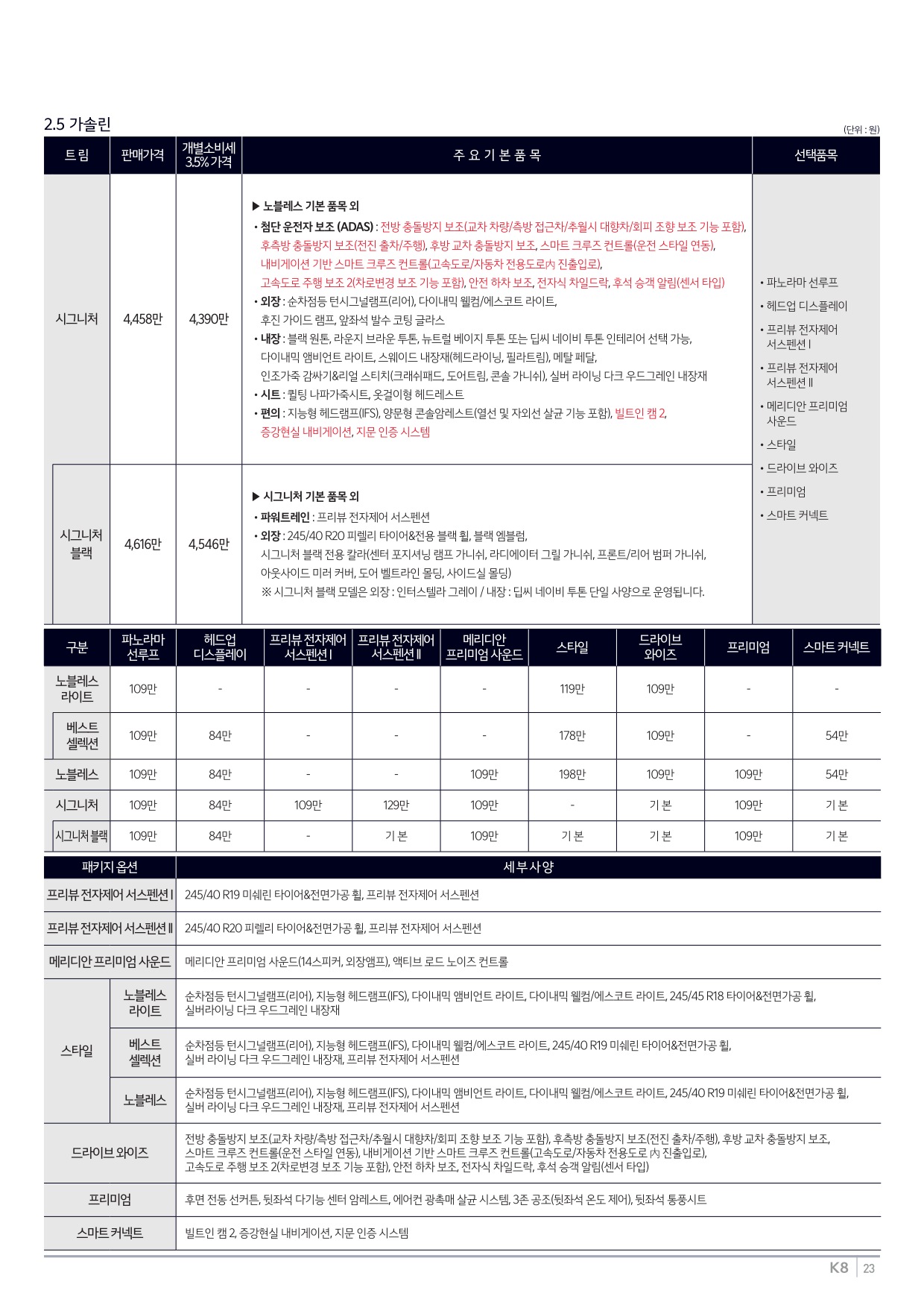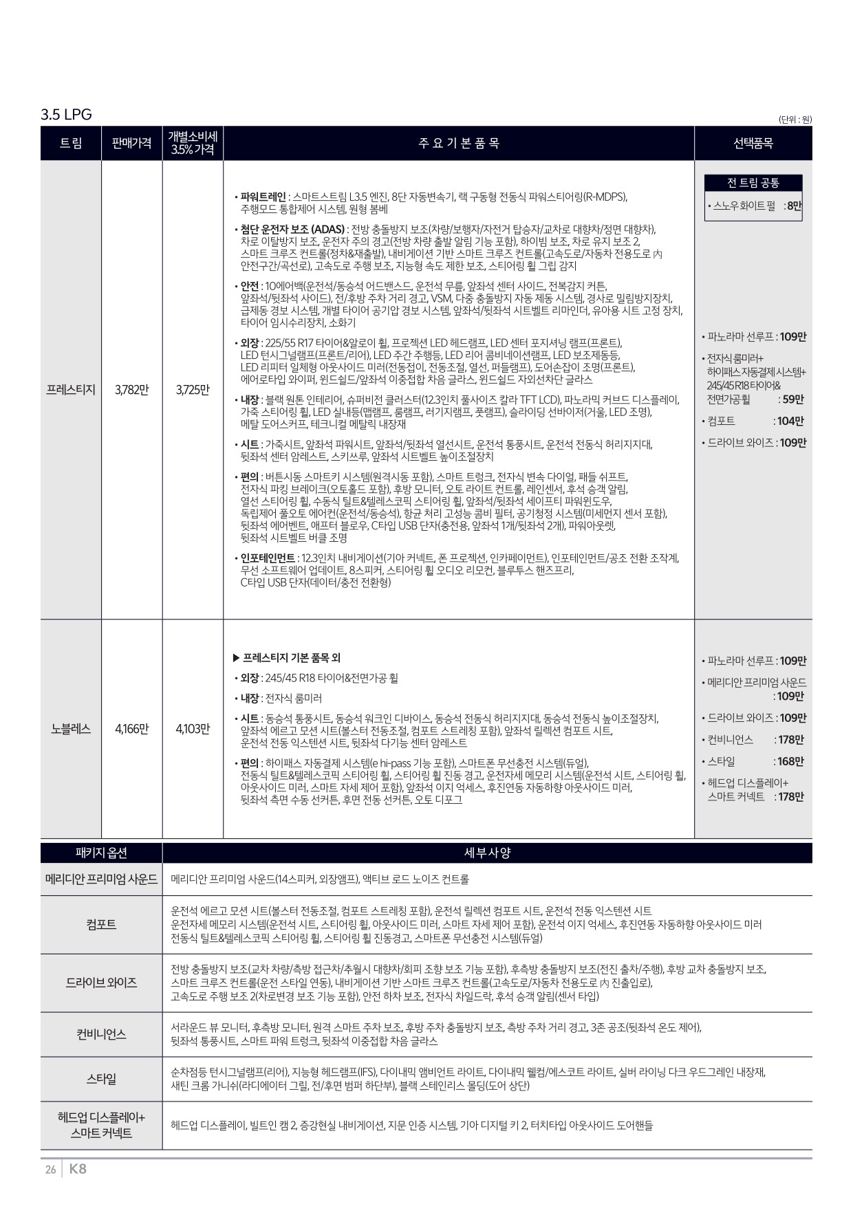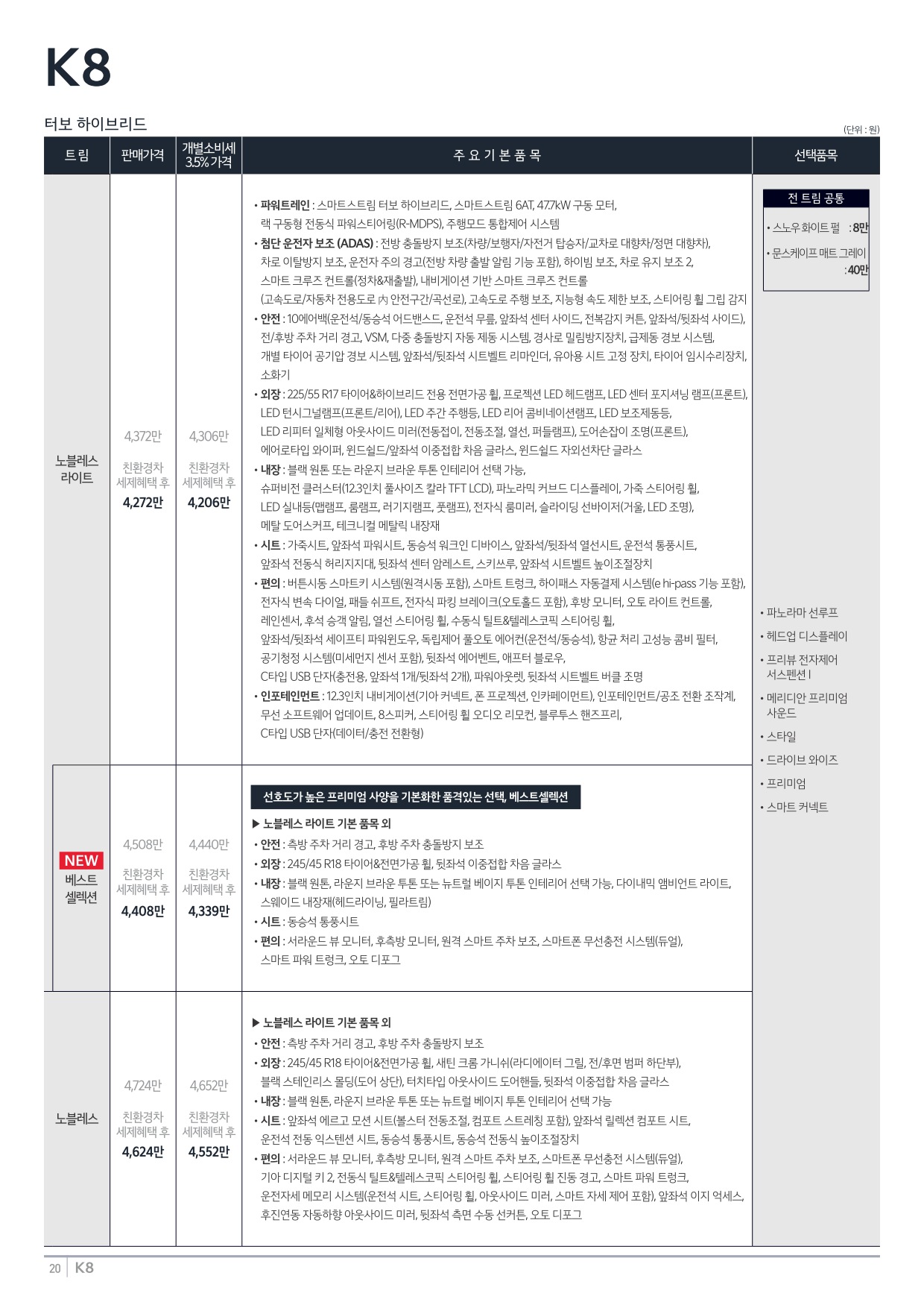 2025년 6월 K8 신차가격표 (2026년형 K8 출시)