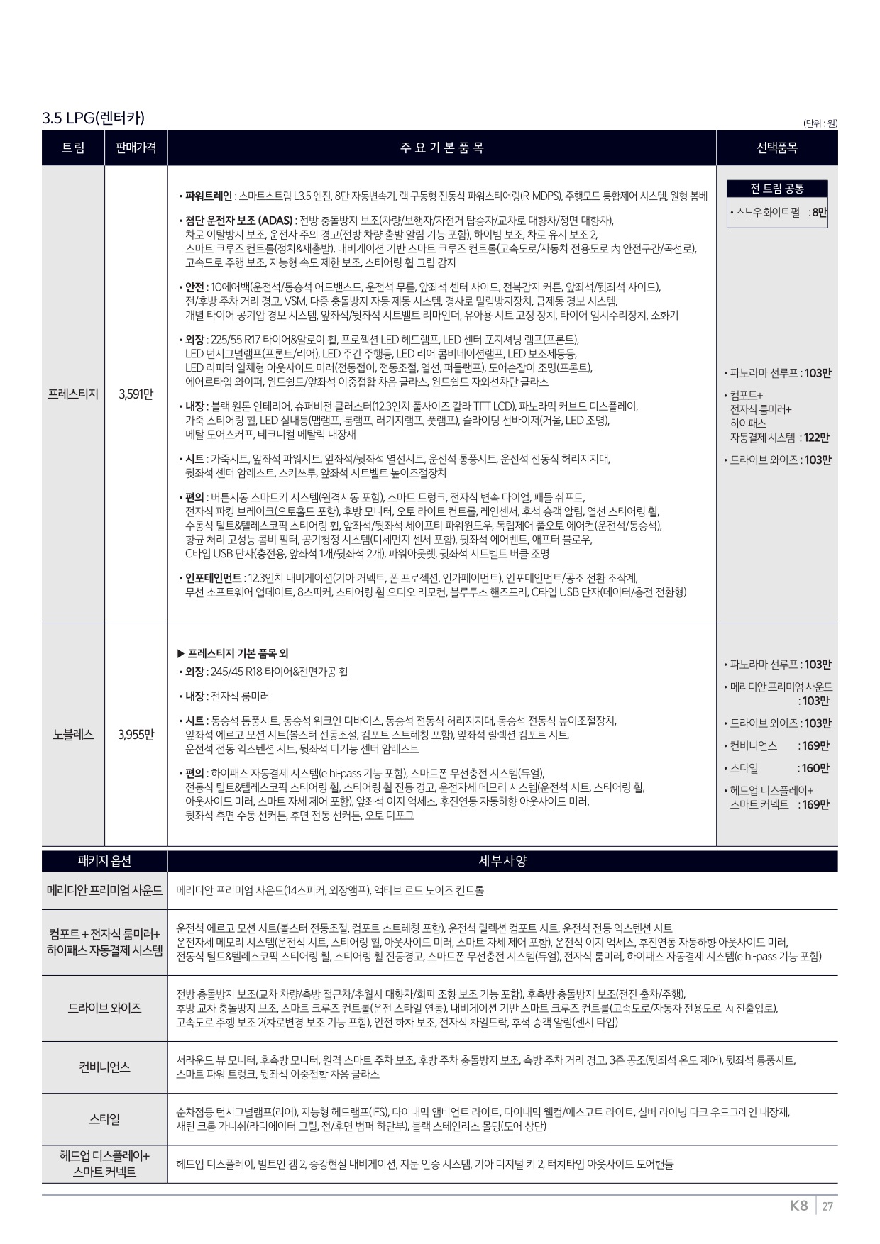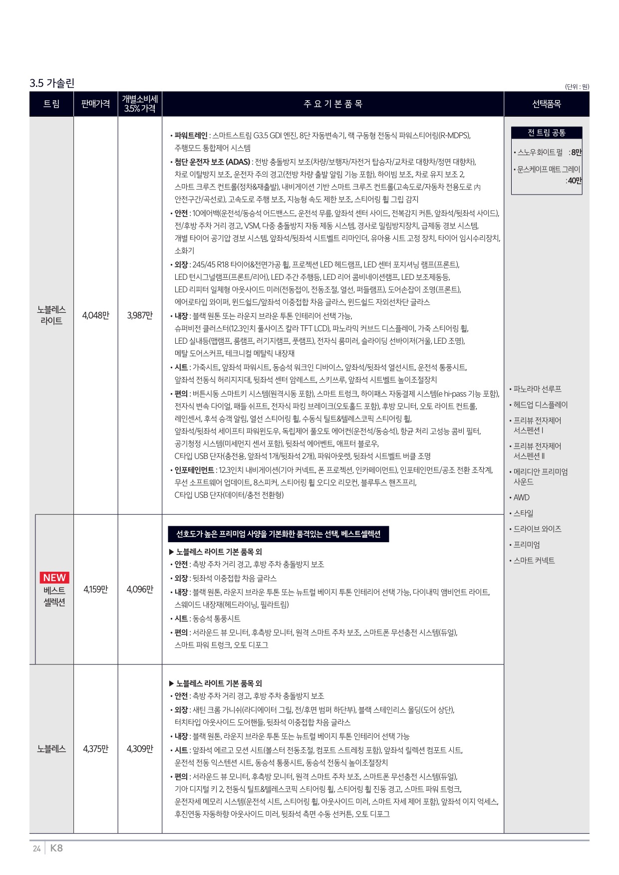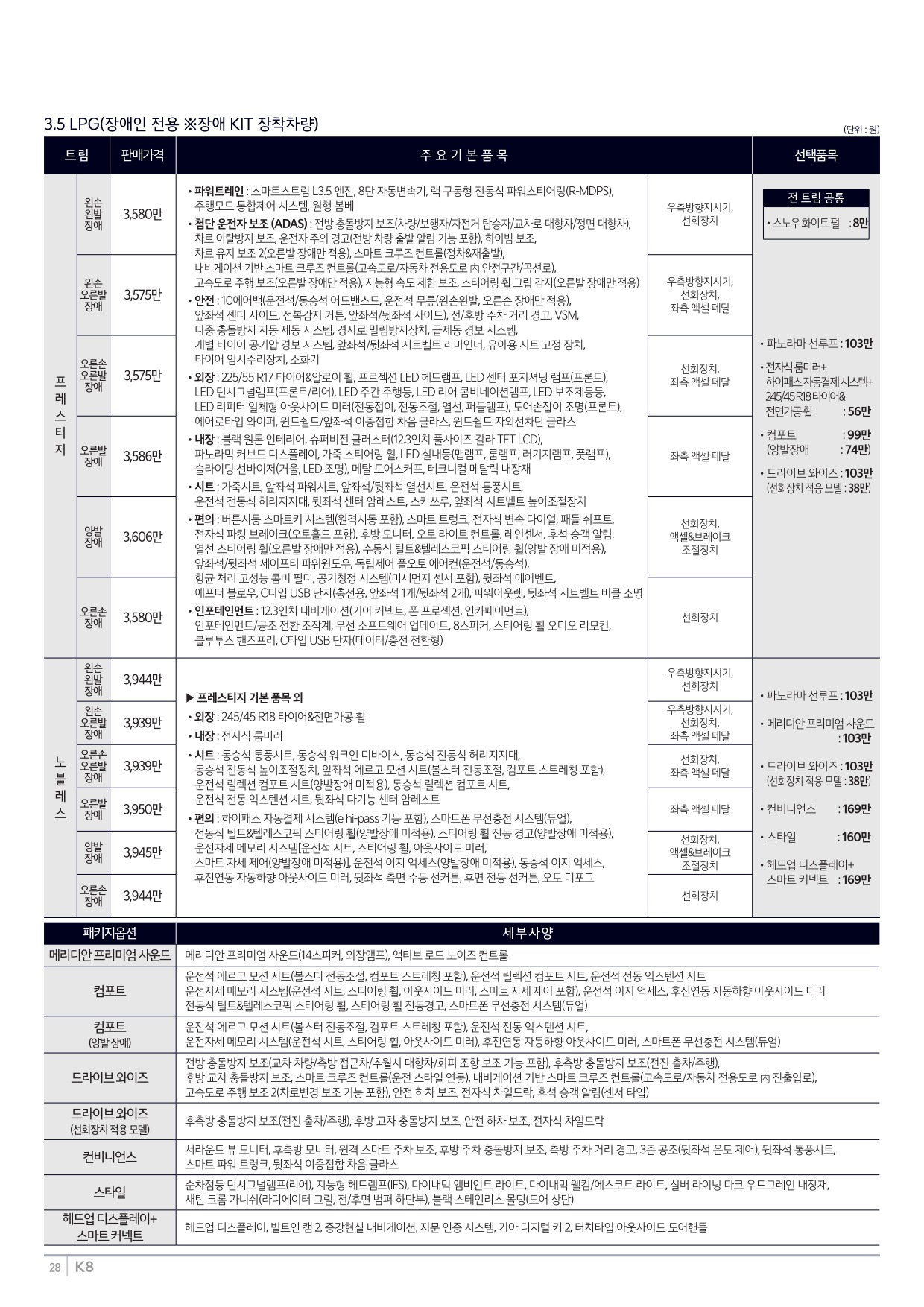 2025년 6월 K8 신차가격표 (2026년형 K8 출시)