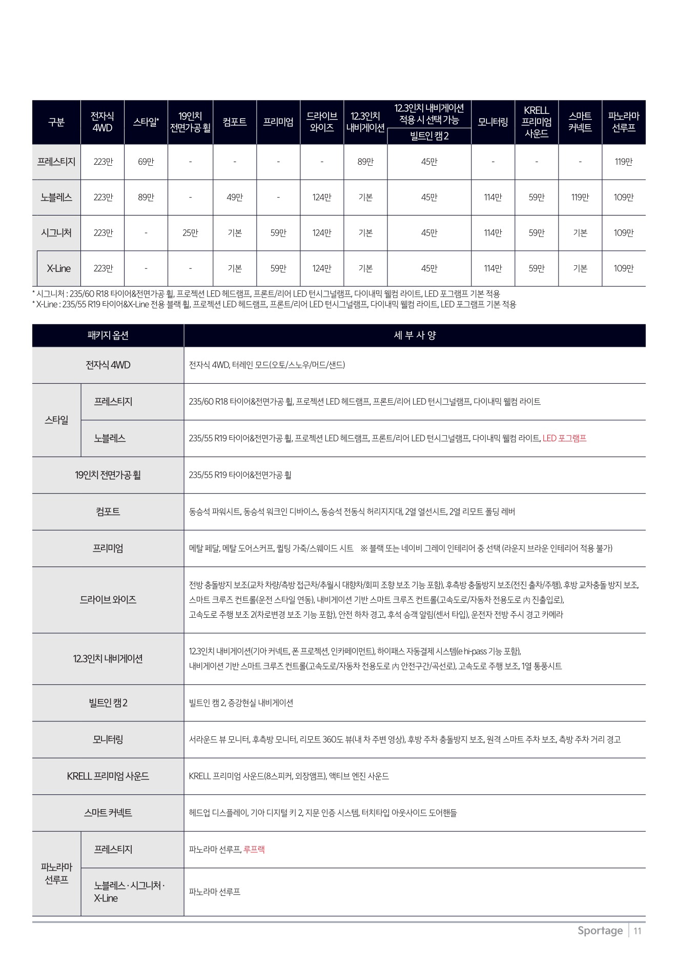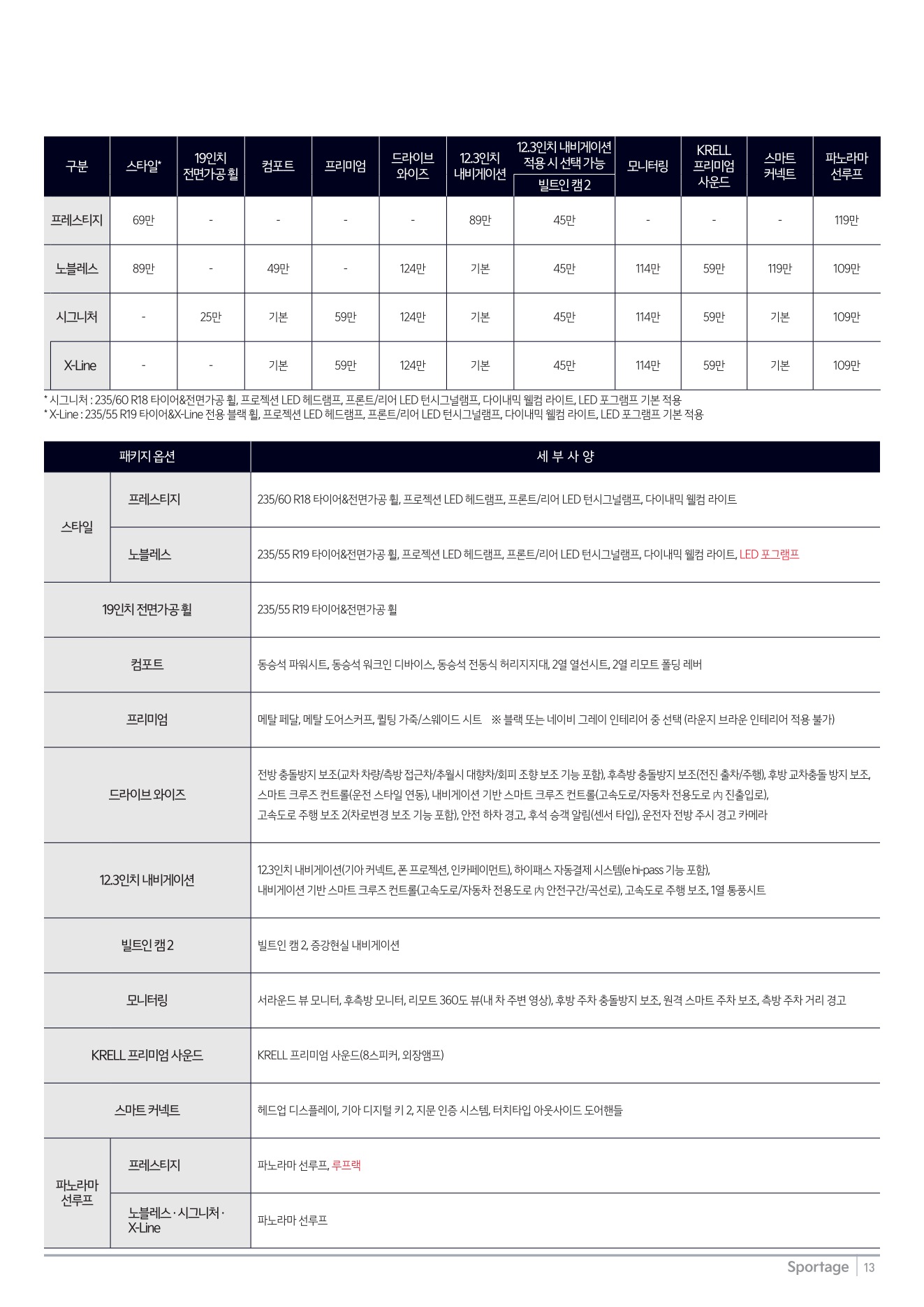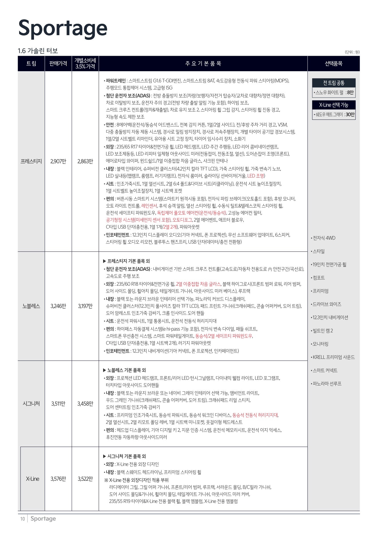 2025년 9월 스포티지 신차가격표 (2026년형 스포티지)