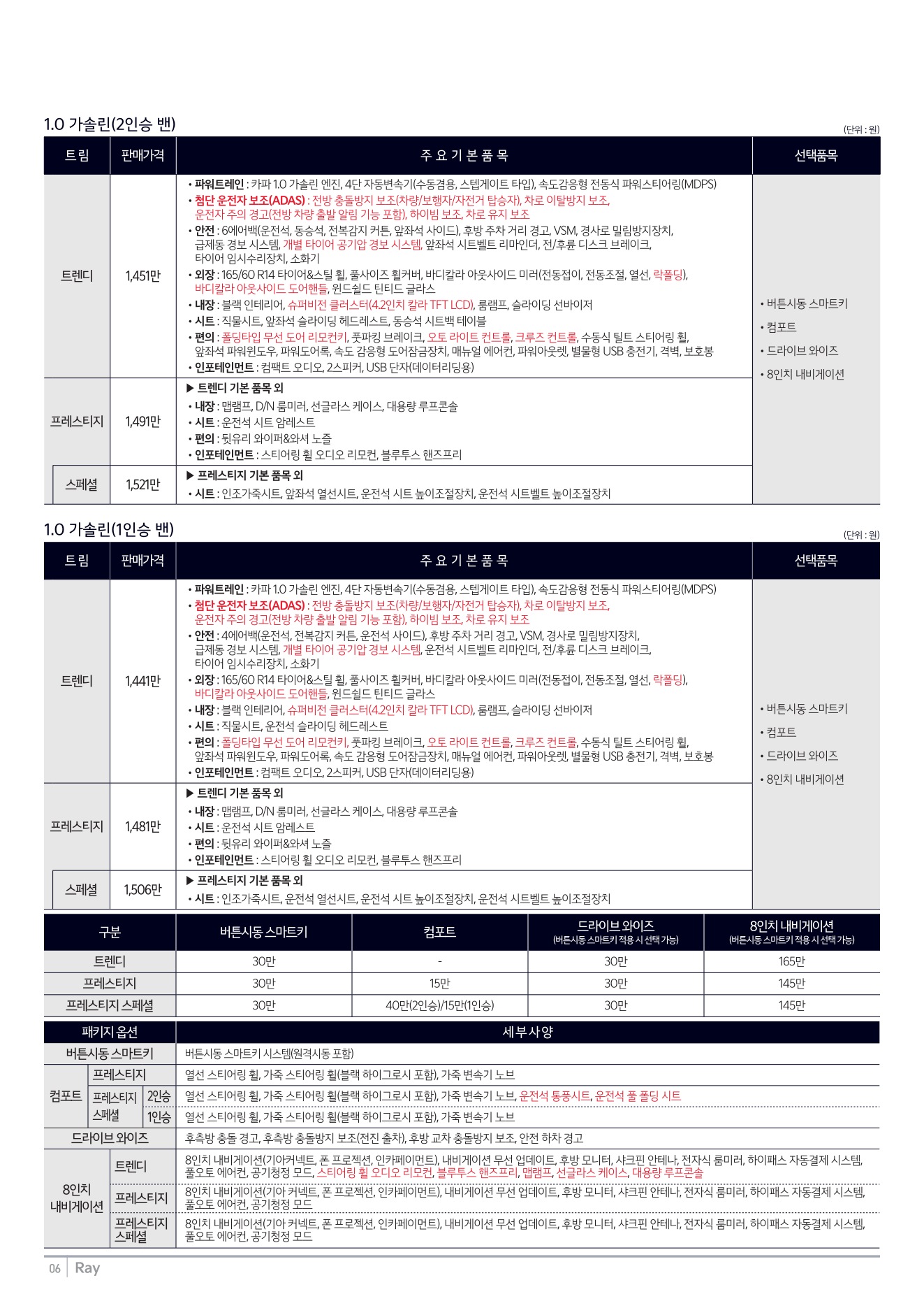2025년 9월 레이 신차가격표 (2026년형 레이 출시)