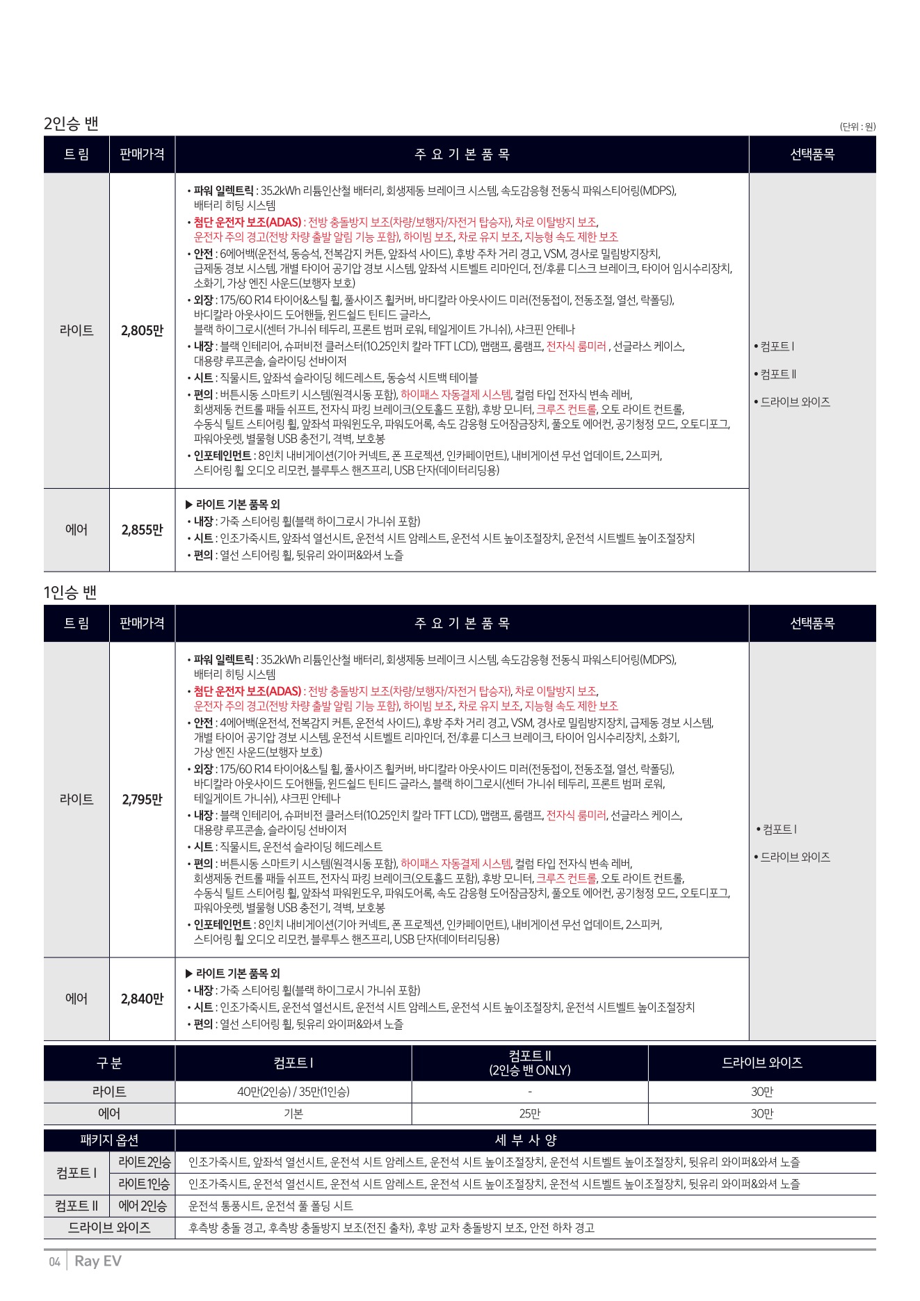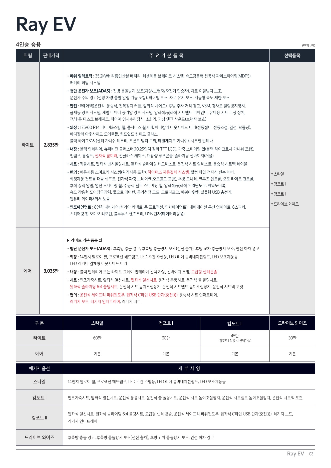 2025년 9월 레이EV 신차가격표 (2026년형 레이EV 출시)