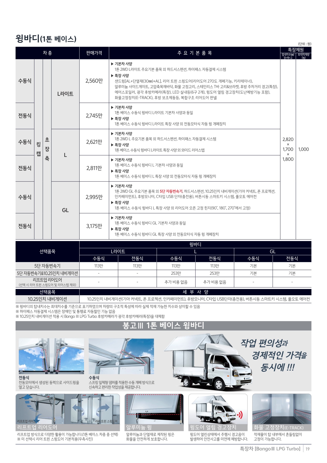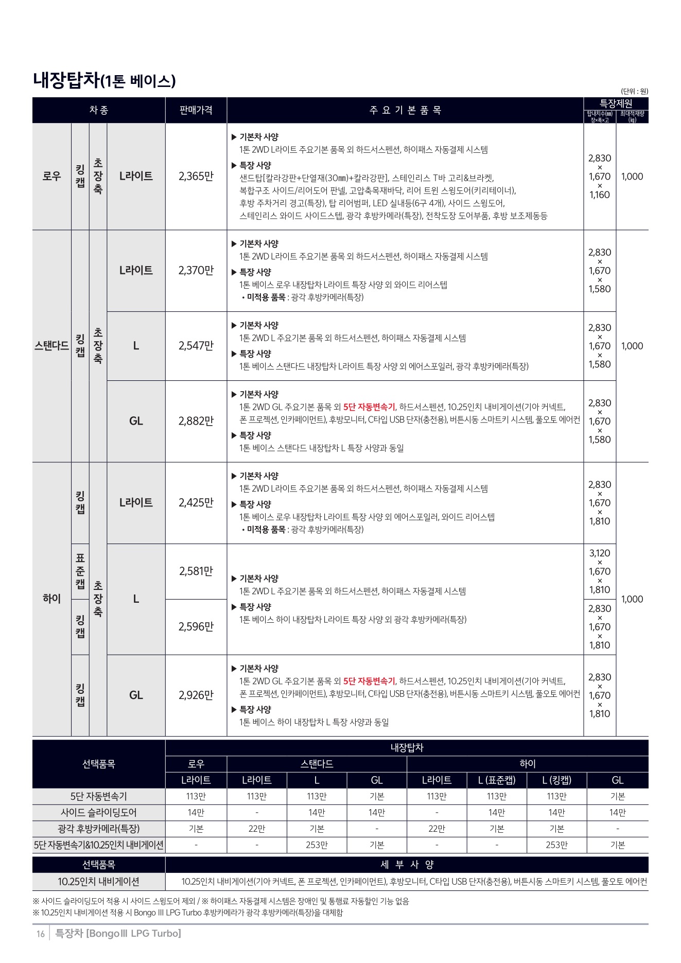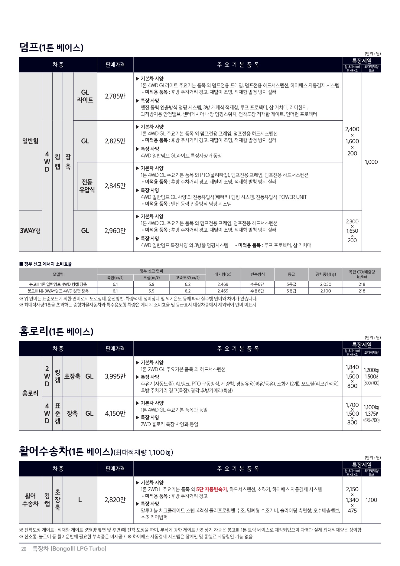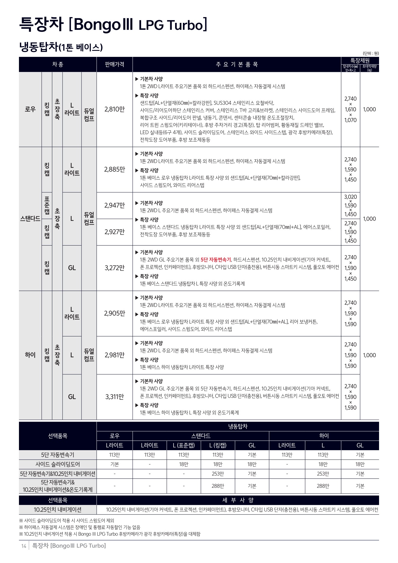 2025년 12월 봉고3 특장차 신차가격표