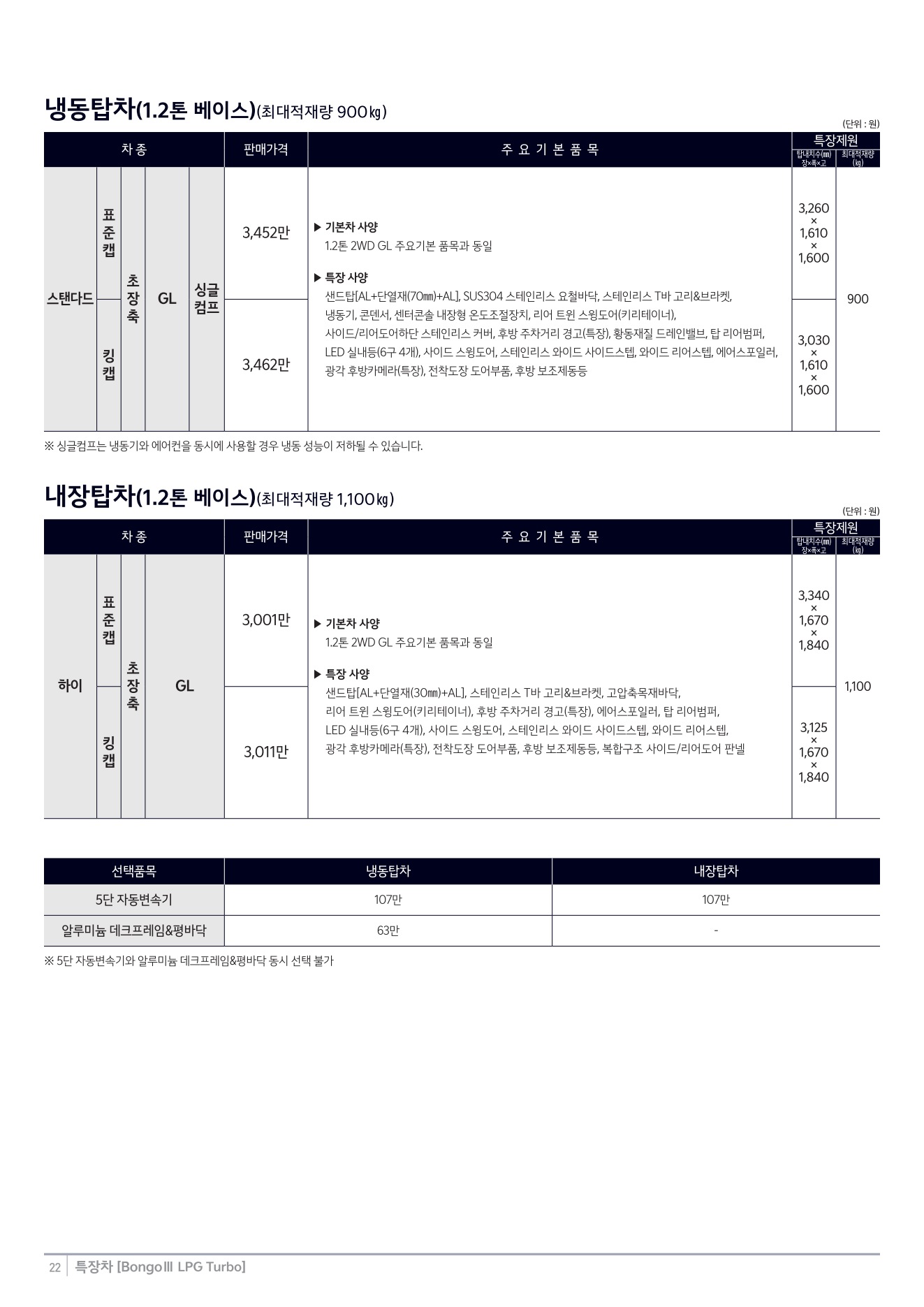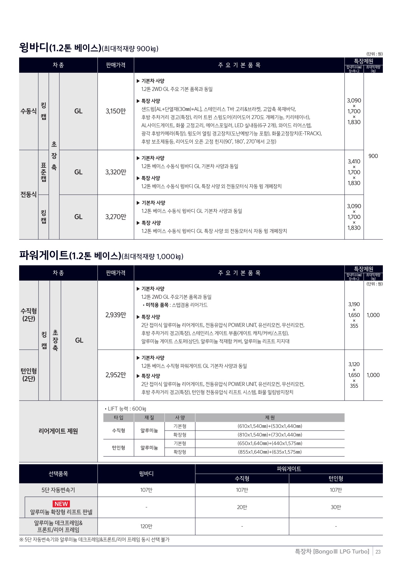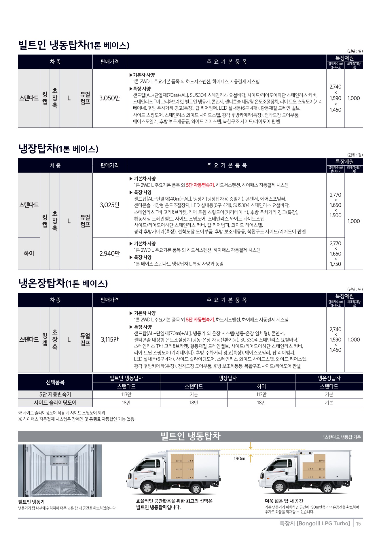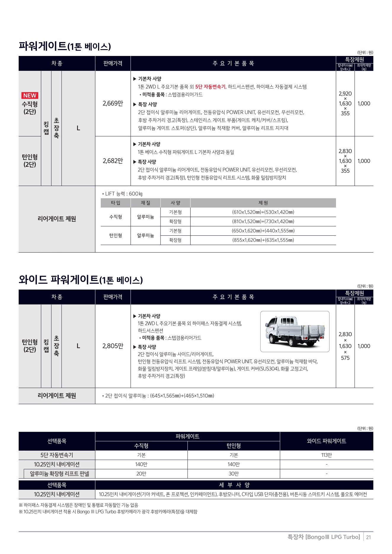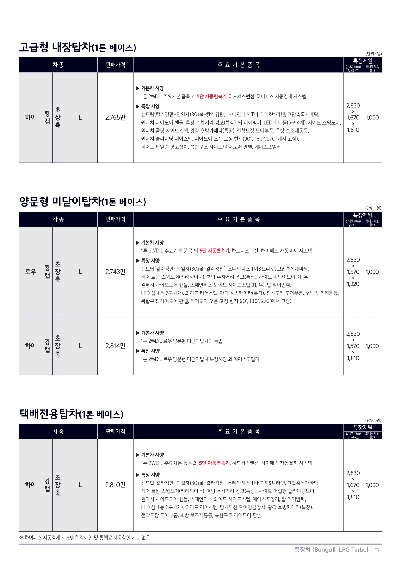 2025년 12월 봉고3 특장차 신차가격표