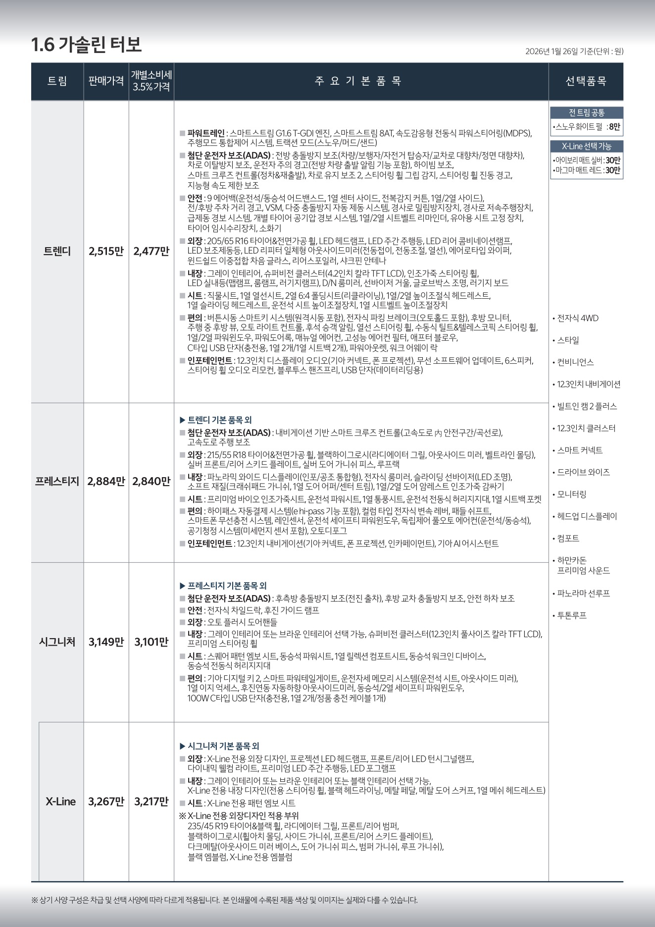 2026년 1월 셀토스 신차가격표 (올뉴 셀토스 출시)