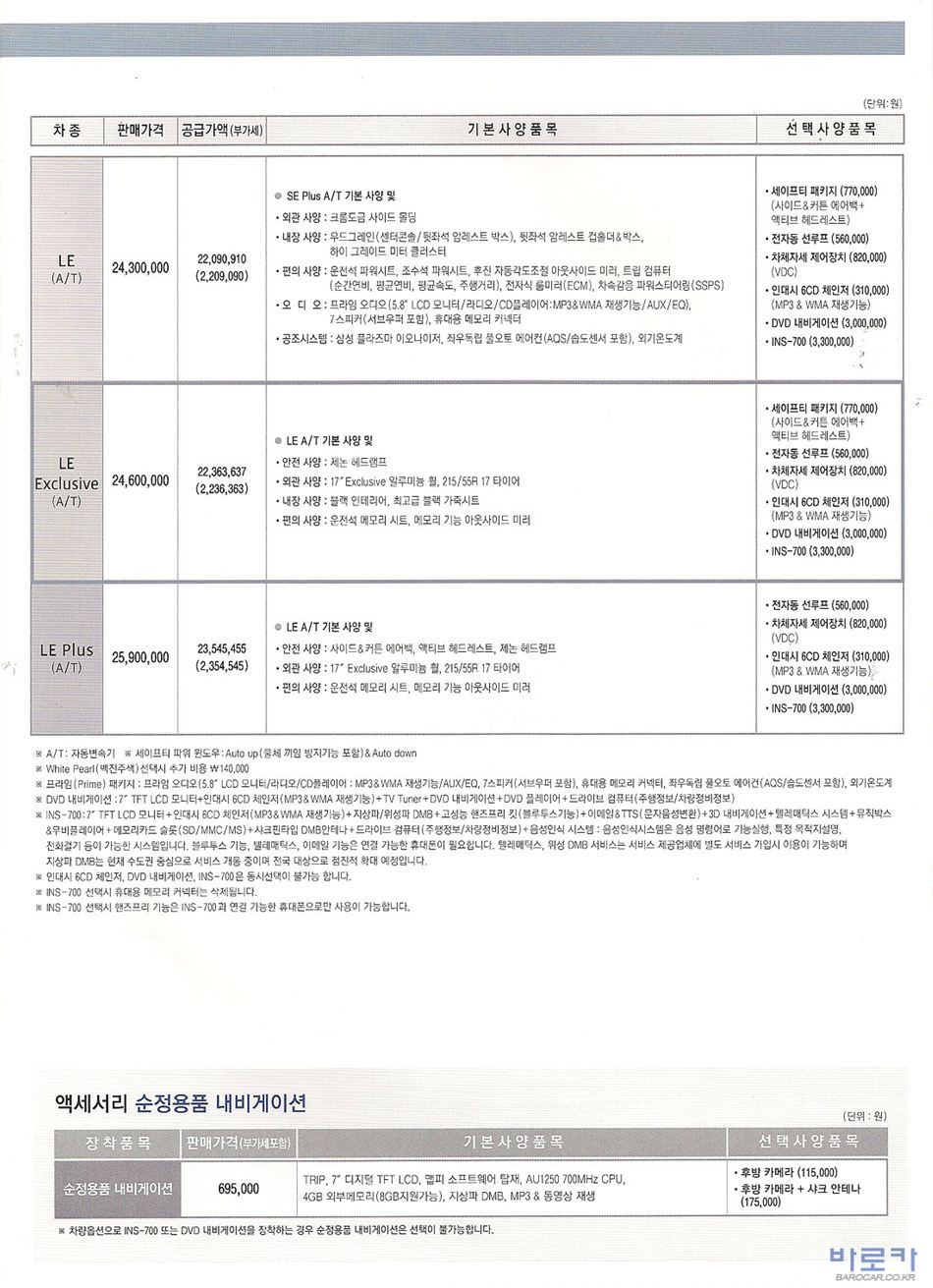 2009년 10월 SM5 신차가격표