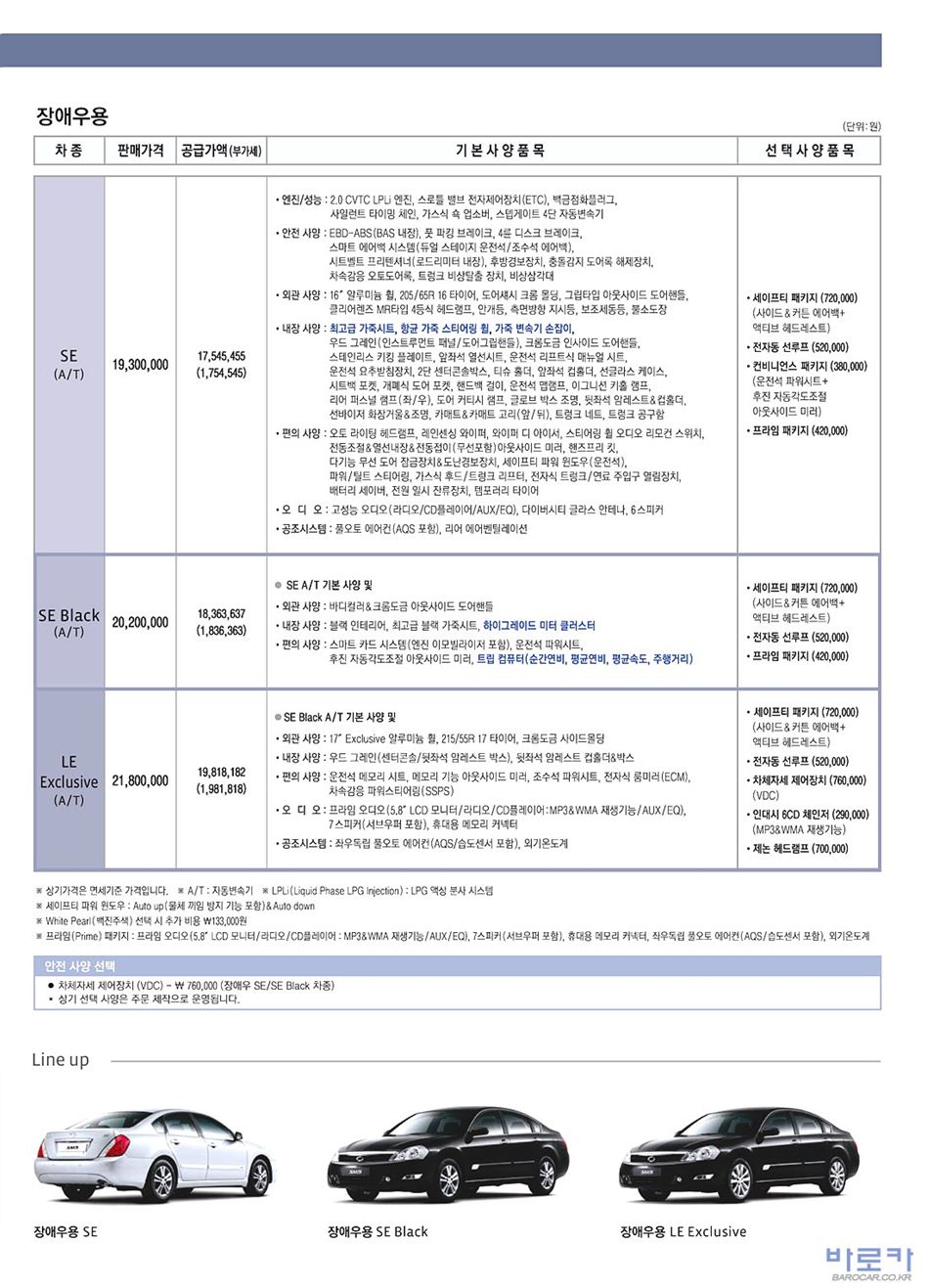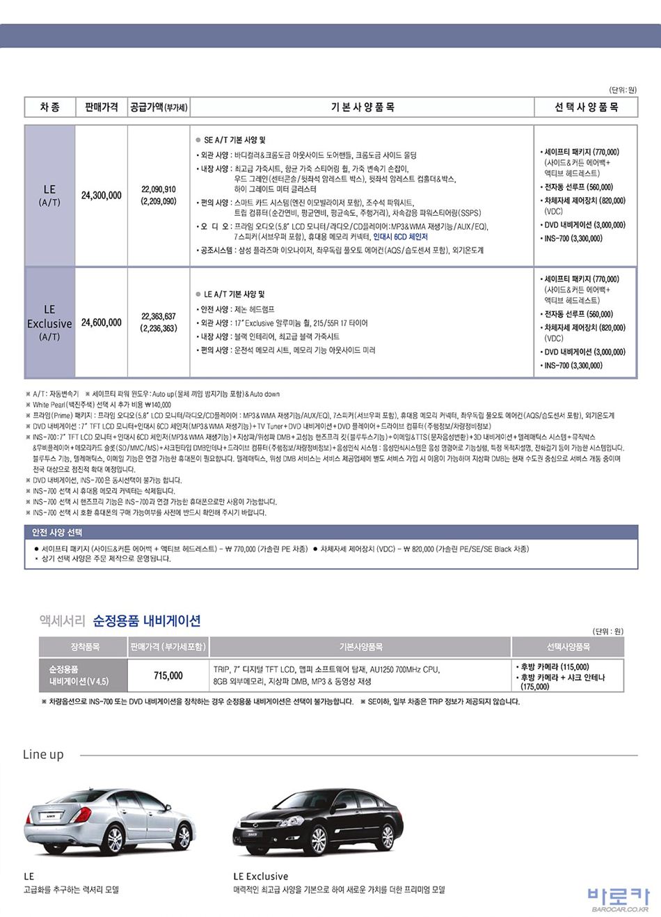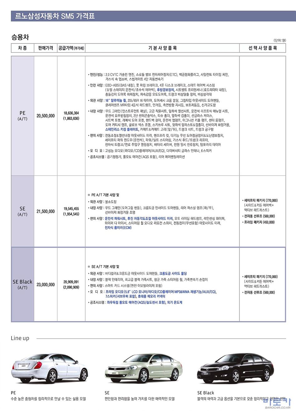 2010년 2월 SM5 (L43) 신차가격표