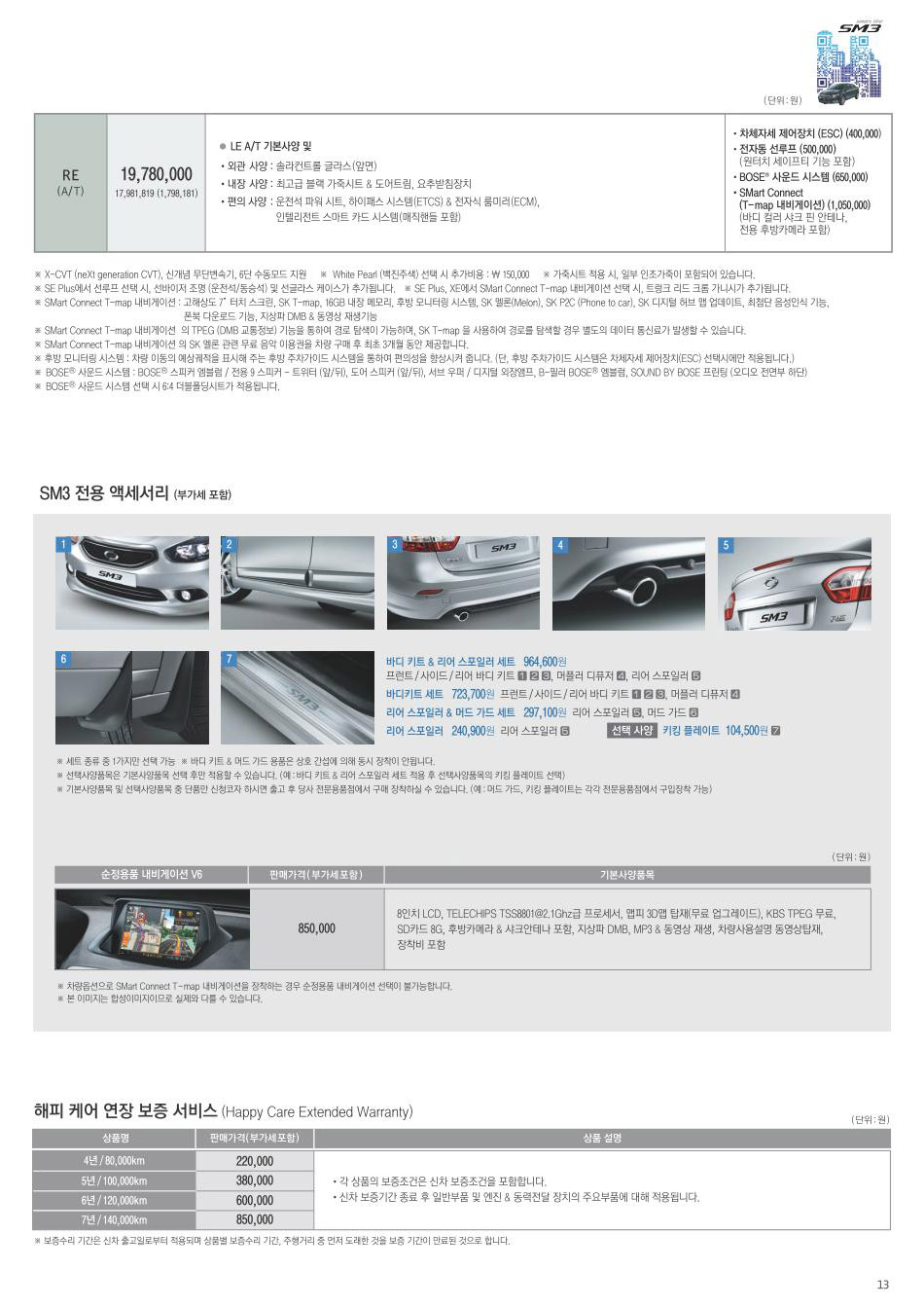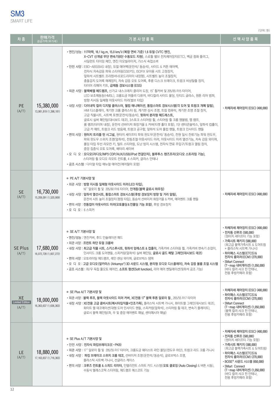 2013년 2월 SM3 신차가격표