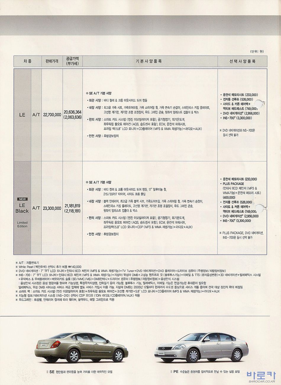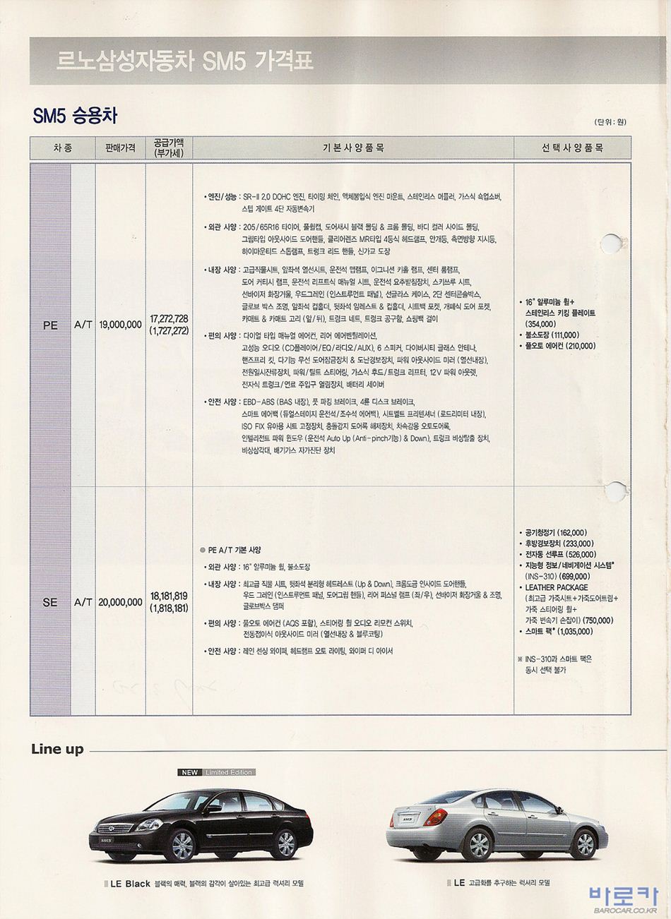2006년 9월 SM5 신차가격표