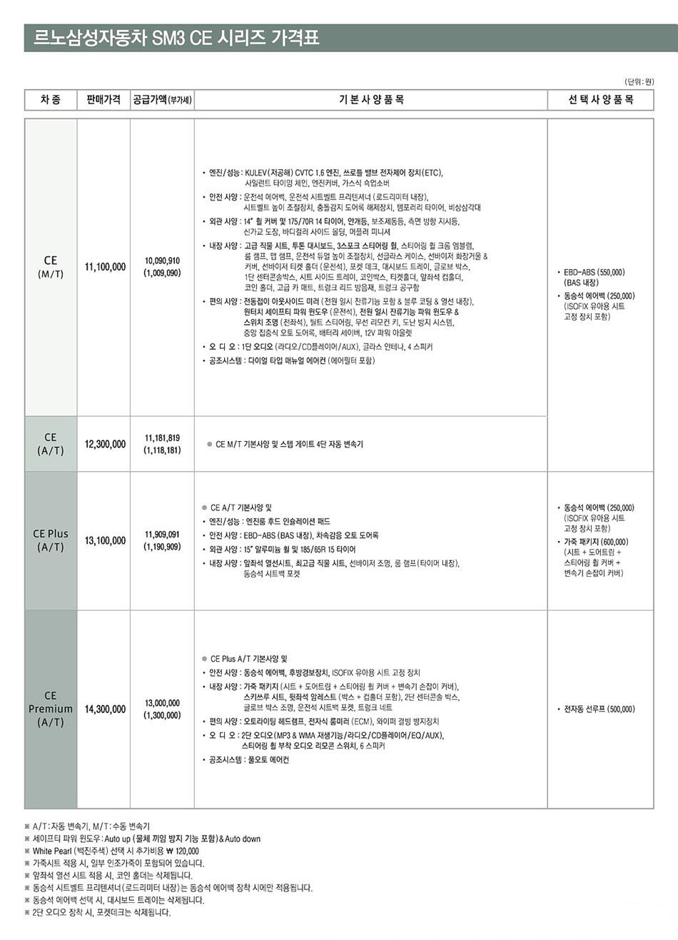신형 SM3 (L38) 출시에 따라 기존 SM3 뉴제네레이션(N17) 모델을 SM3 CE 로 발매중