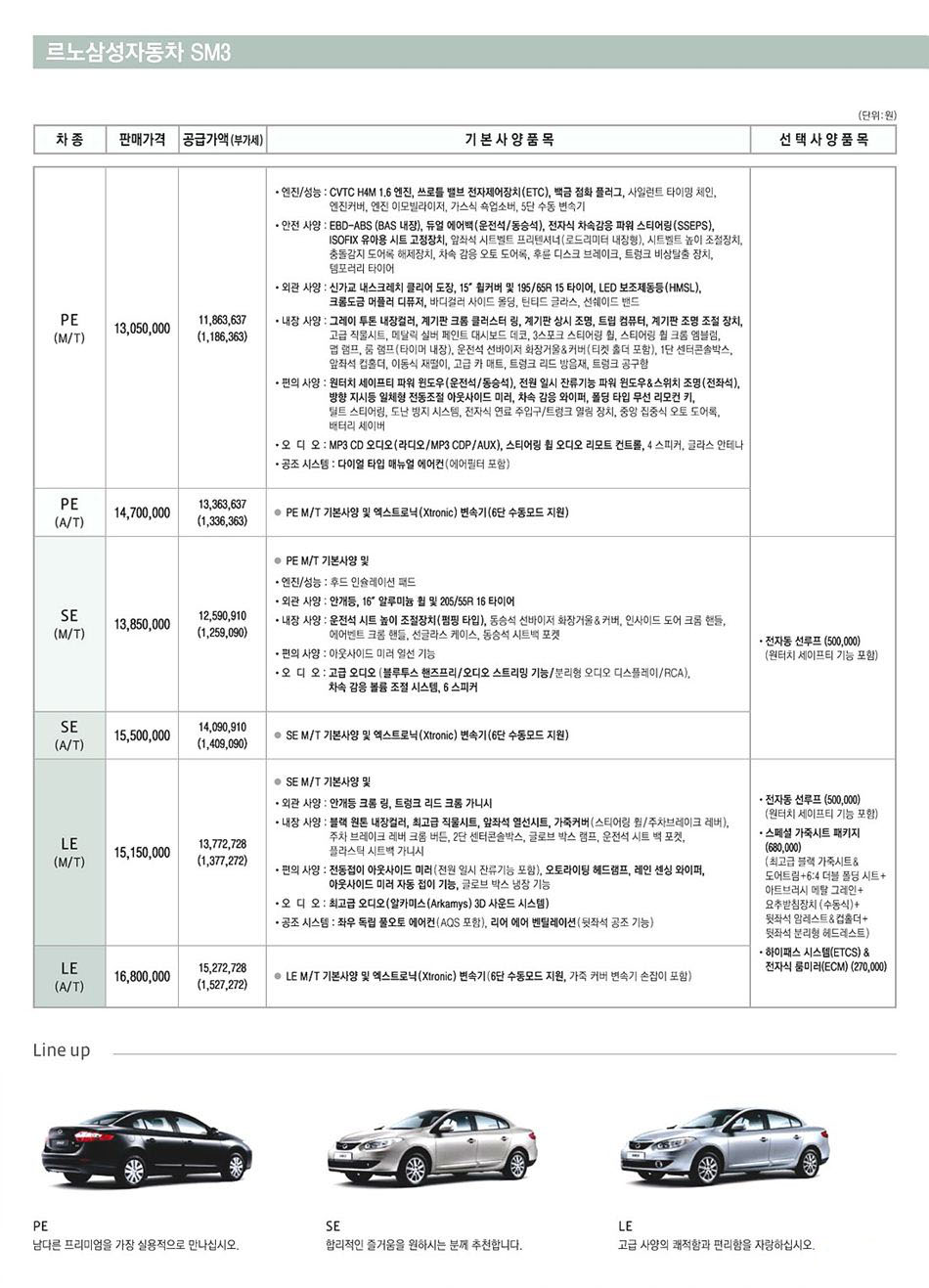 2010년 2월 SM3 CE 신차가격표