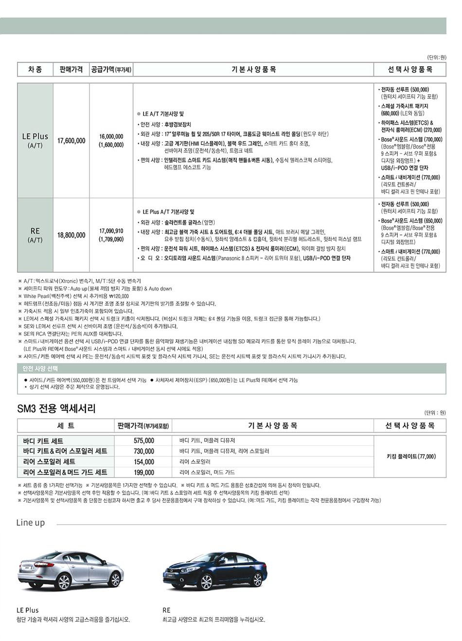 2010년 2월 SM3 (L38) 신차가격표