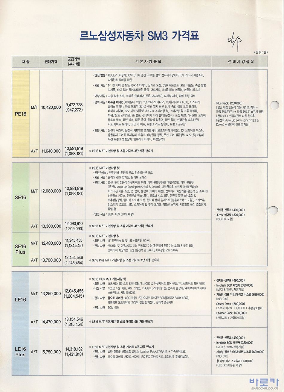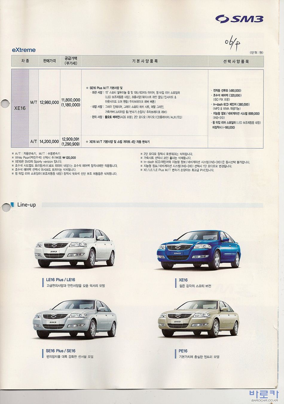 2005년 9월 SM3 신차가격표 (SM3 뉴제네레이션)